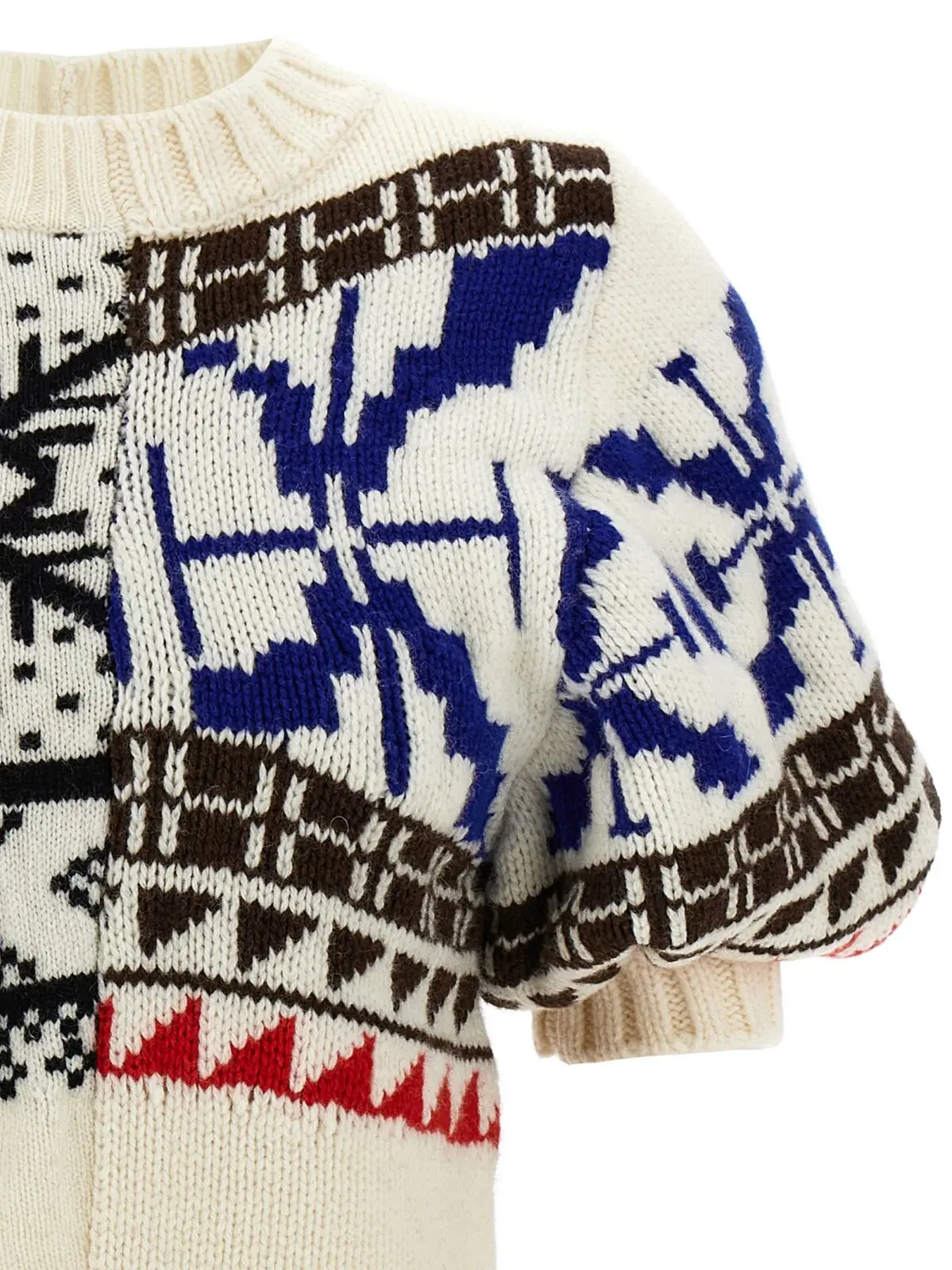 Представляємо вам багатокольоровий жіночий светр Sacai, який втілює елегантність і сучасний стиль. Виготовлений з високоякісного поєднання 80% вовни та 20% нейлону, цей светр забезпечує неймовірний комфорт і тепло, що робить його ідеальним вибором для будь-якого сезону. Унікальний дизайн з короткими рукавами-ліхтариками та асиметричним подолом створює враження динамічності та оригінальності, підкреслюючи вашу індивідуальність. Цей светр не лише естетично привабливий, але й функціональний, дозволяючи легко комбінувати його з різними елементами гардеробу – від класичних спідниць до стильних джинсів. Sacai поєднує в собі інноваційний підхід до моди та високу якість матеріалів, що робить кожен виріб справжнім витвором мистецтва. Обираючи цей светр, ви підкреслюєте свій статус та смак, адже він стане бездоганним доповненням вашого стильного образу.