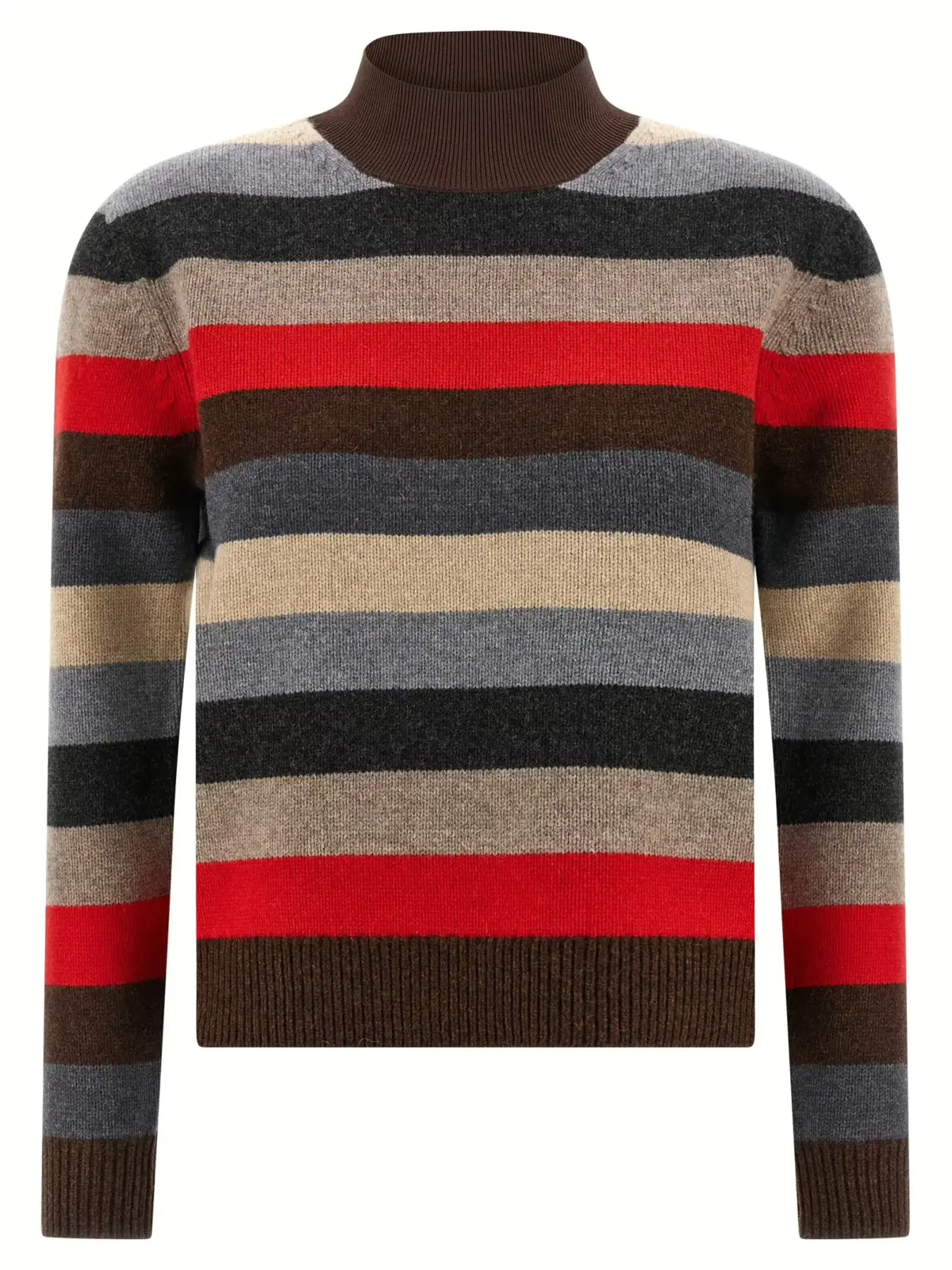 Вишуканий багатокольоровий светр з високоякісної вовни, що поєднує елегантний дизайн із функціональністю високого комфорту. Високий комір і довгі манжети підкреслюють стиль, а логотип на спині додає статусності, роблячи цей виріб універсальним вибором для сучасної жінки з витонченим смаком.