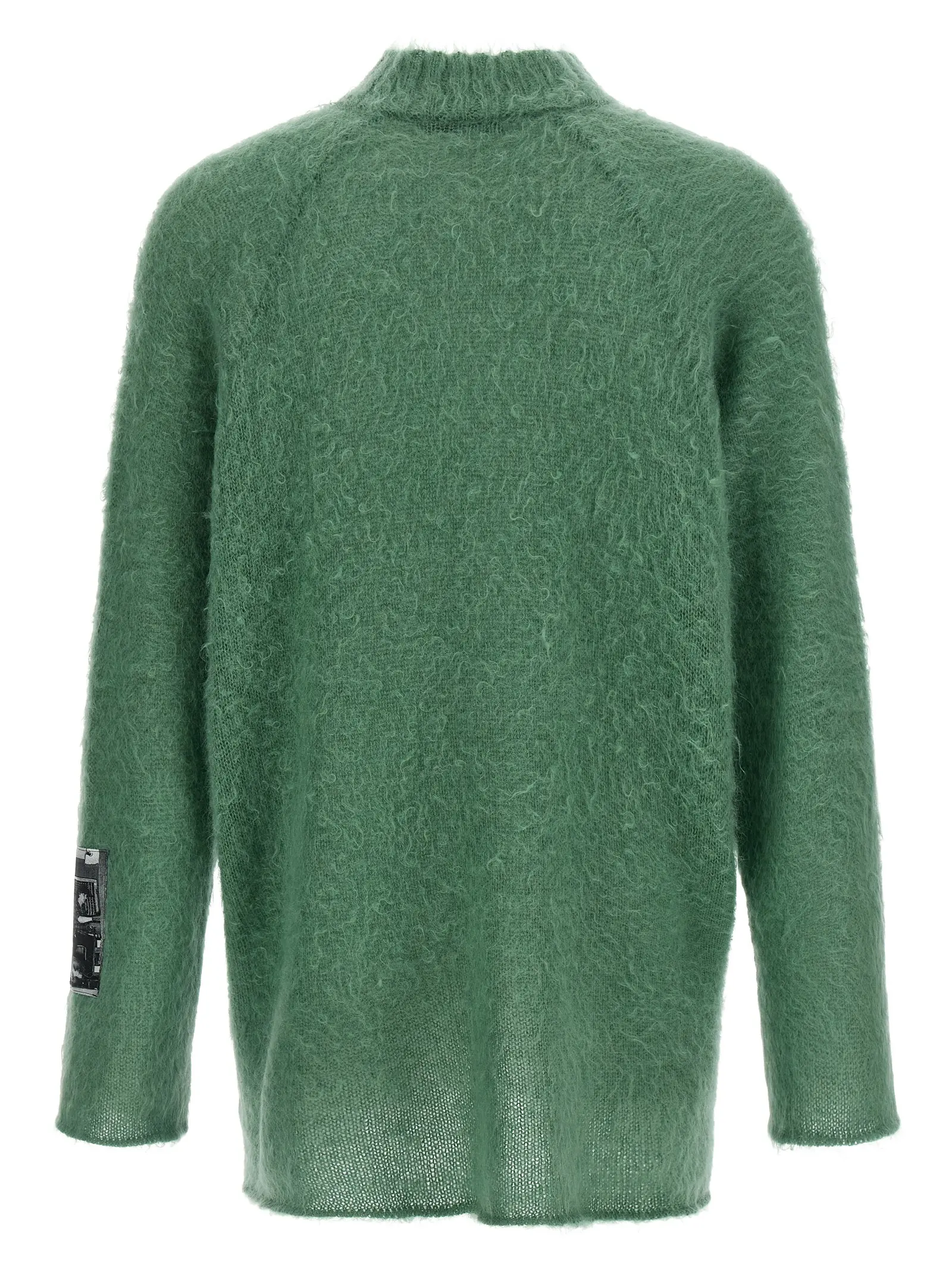 Светр виготовлений з суміші вовни та мохеру. Вміст матеріалів складає 38% мохер, 37% нейлон, 25% вовна. Є жакардова аплікація з художнім зображенням французького митця. Має круглу горловину. Рукави довгі з опущеними плечима.