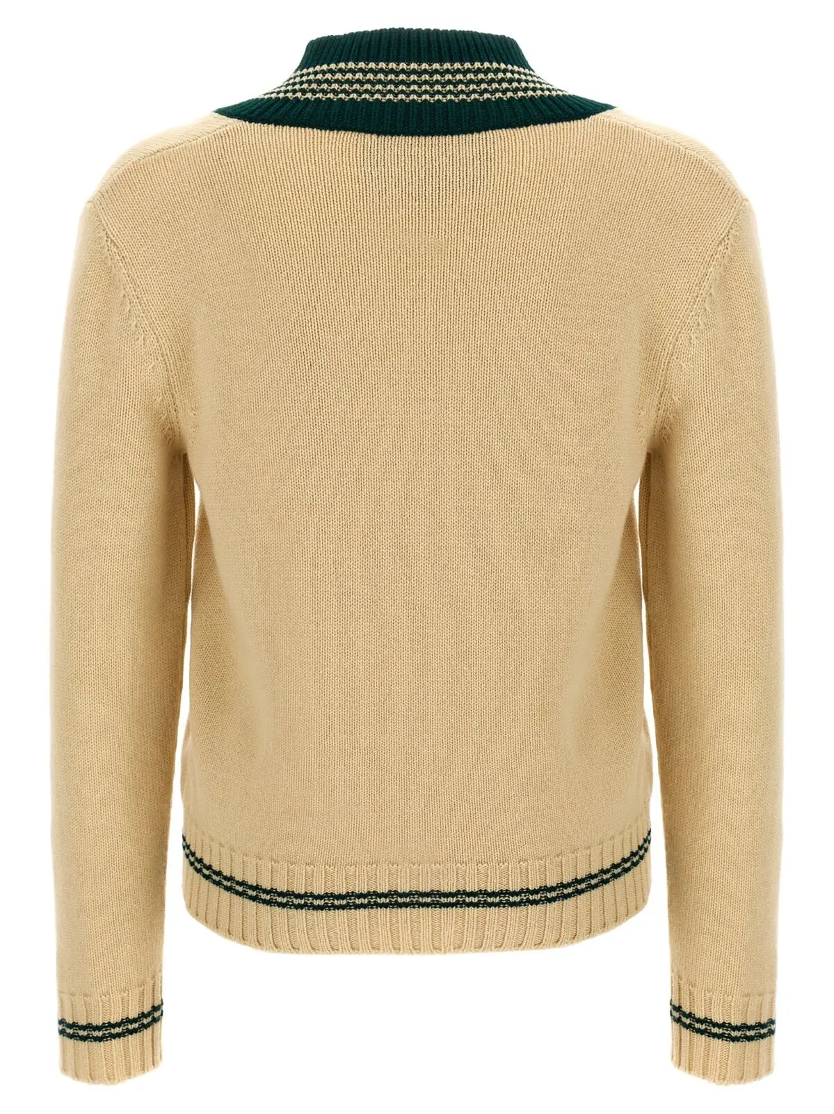Вишуканий чоловічий светр із 100% натуральної вовни першого сорту поєднує в собі витонченість та комфорт, завдяки елегантному жакардовому візерунку Le Chien de la Maison на передній частині, V-подібному вирізу та довгим рукавам із манжетами, що підкреслюють стиль і статус у будь-якій ситуації.