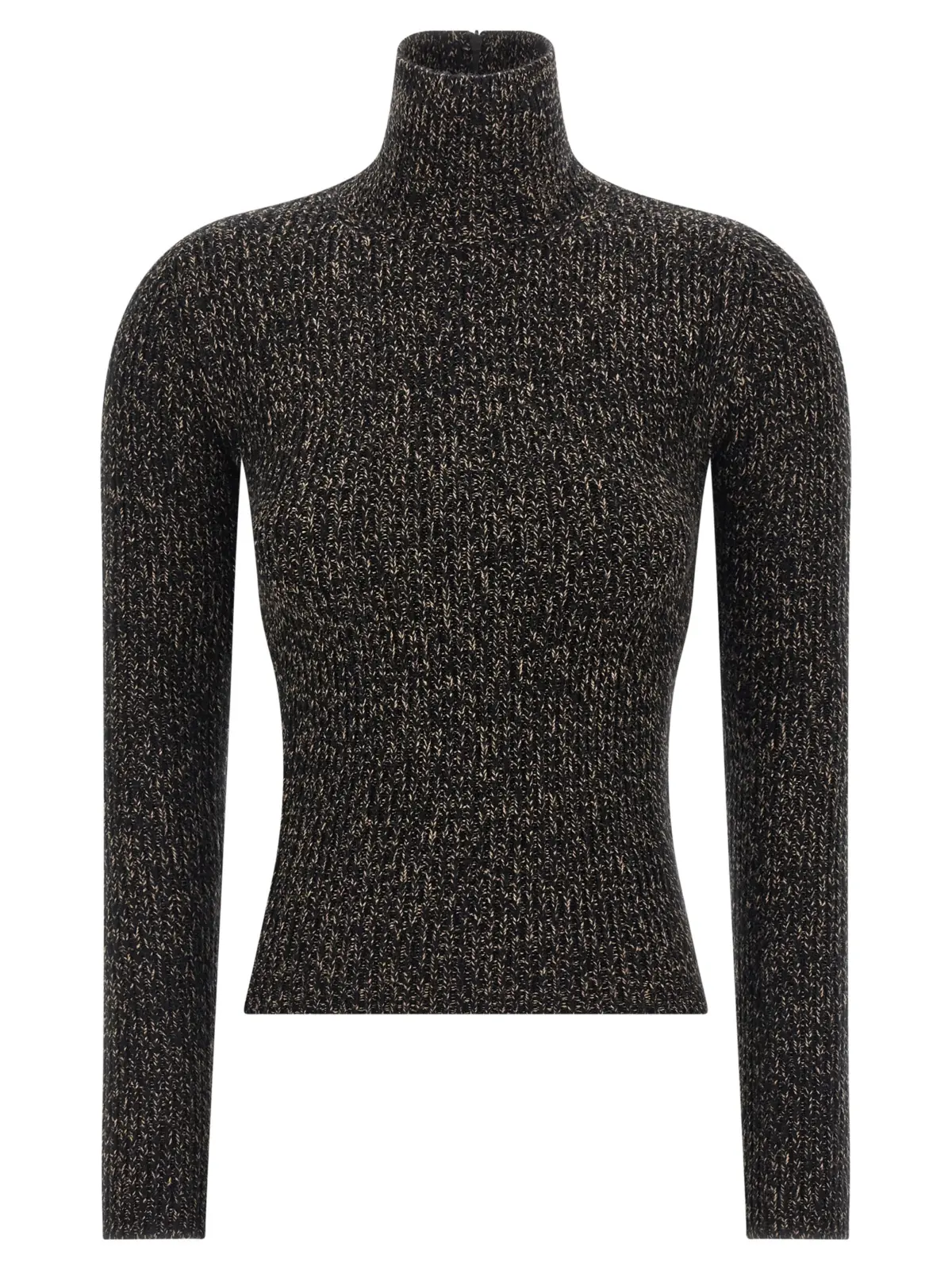 Вишуканий чорний светр водолазка, виконаний із поєднання високоякісної вовни та кашеміру з еластичним ефектом, вирізняється неперевершеною м’якістю та комфортом. Рельєфна в’язка, висока горловина й довгі манжетні рукави підкреслюють елегантність, а застібка на блискавку ззаду додає сучасного акценту. Ідеальний вибір для створення вишуканого образу з відчуттям статусу та бездоганного стилю.