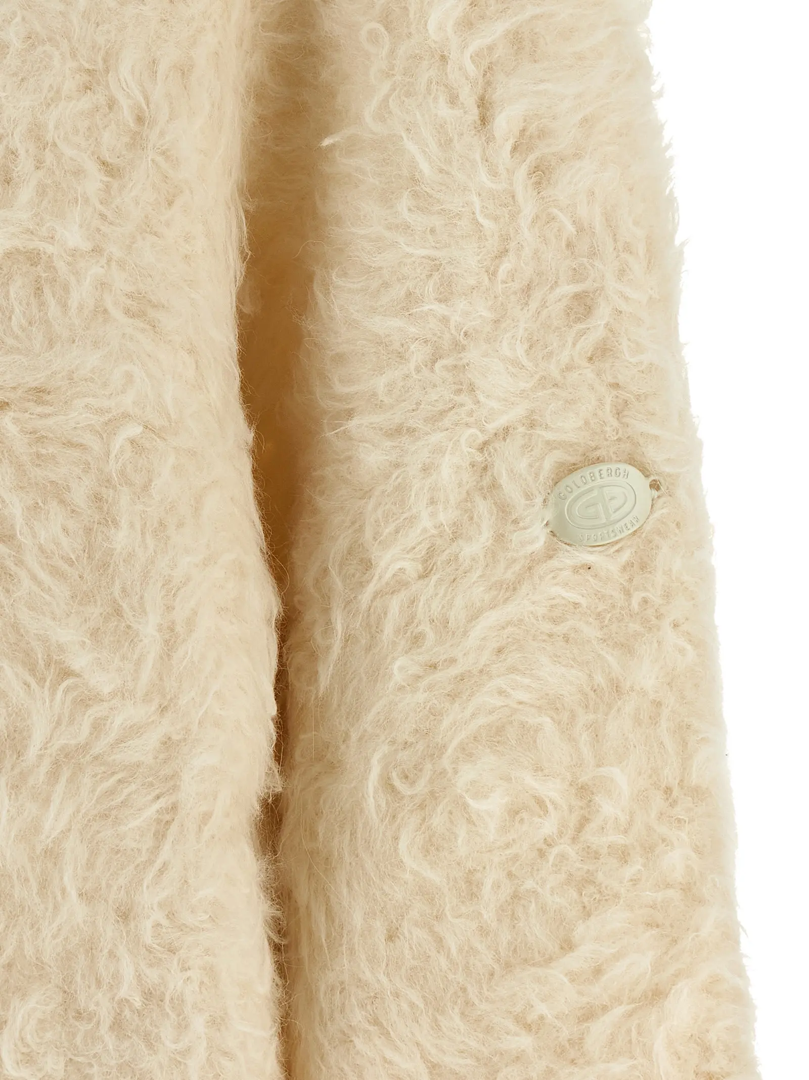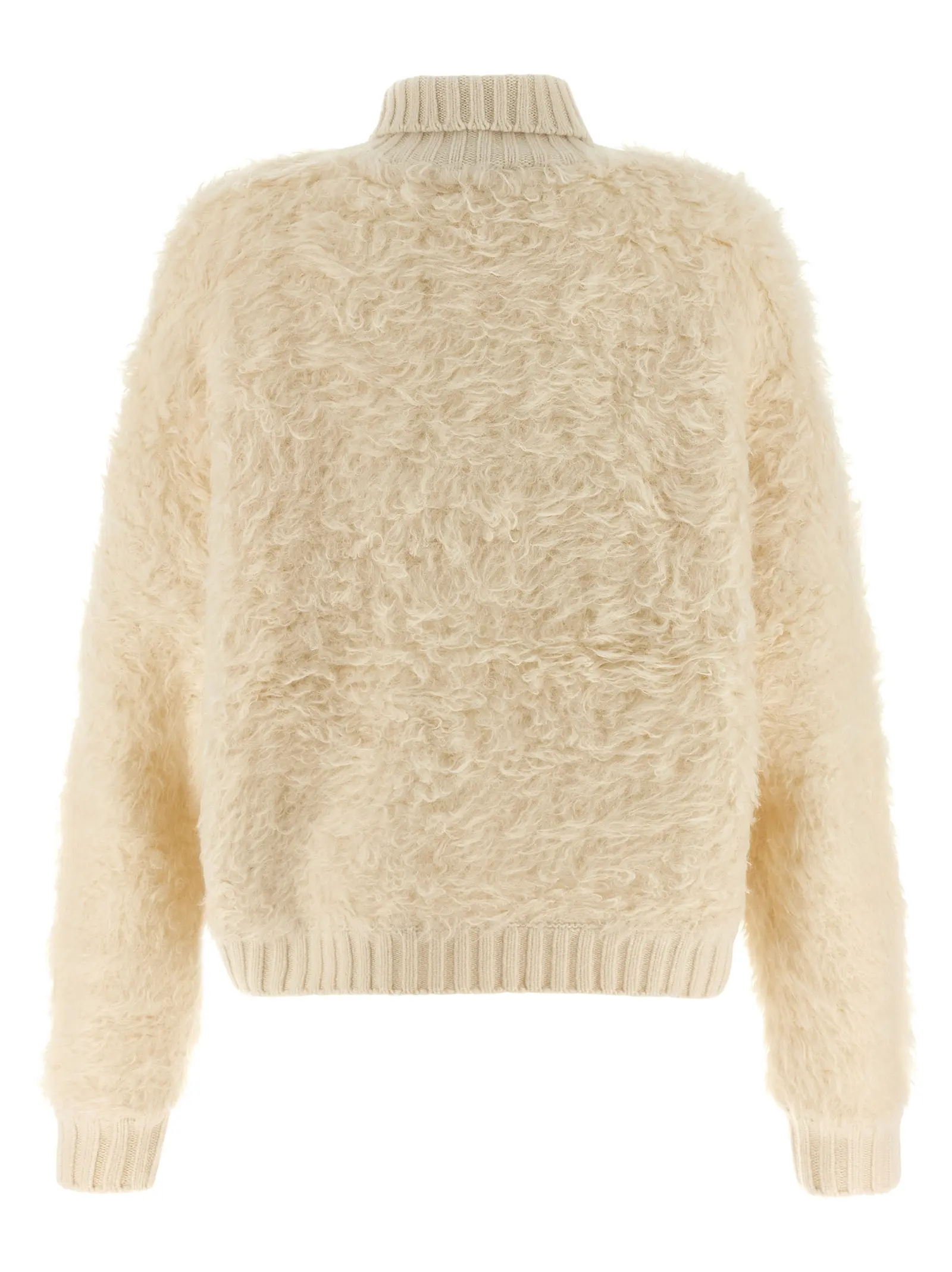 Виготовлено з суміші альпаки та поліестеру. Високий комір у вигляді гольфу. Довгі рукави з манжетами. Рельєфна в’язка з ребристими деталями. Опущені плечі. Металева аплікація з логотипом в тон.