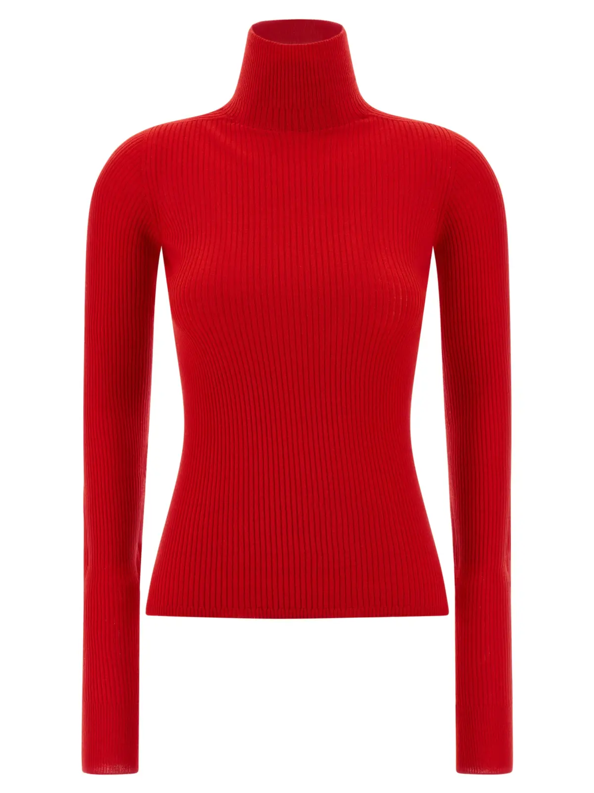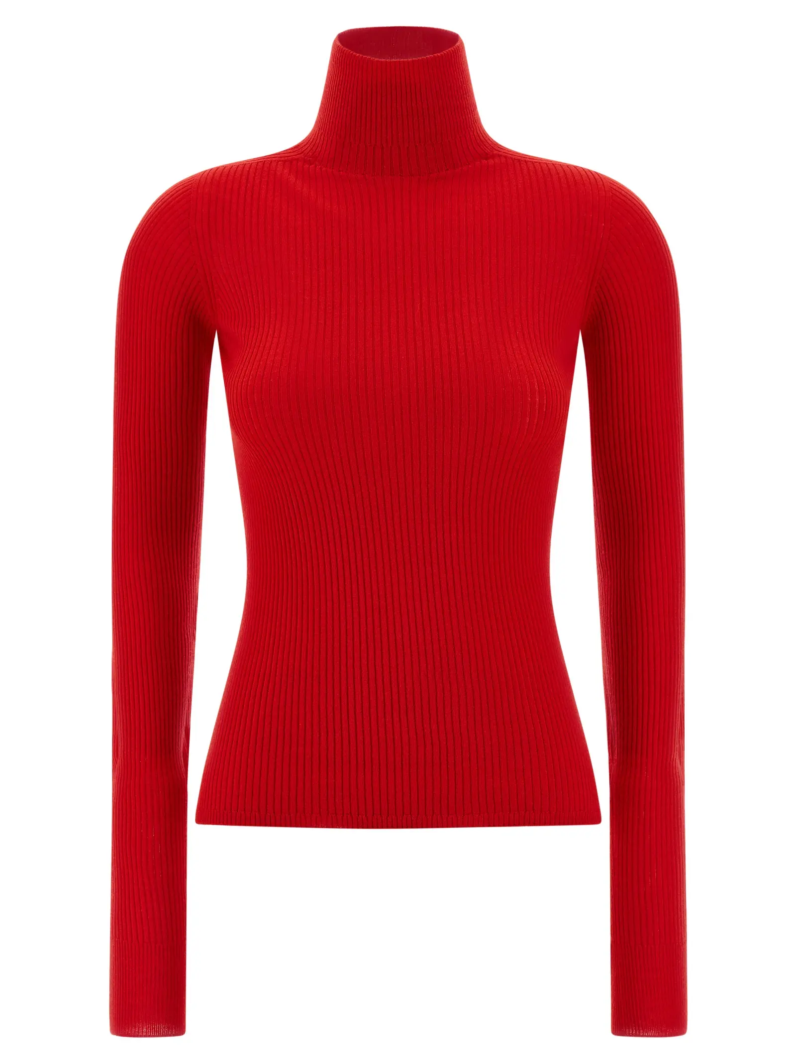 Светр виготовлений з 100% натуральної вовни. Модель має високий комір. Виконаний безшовним в’язанням. Рукави довгі з манжетами. Тканина з фактурної резинки.