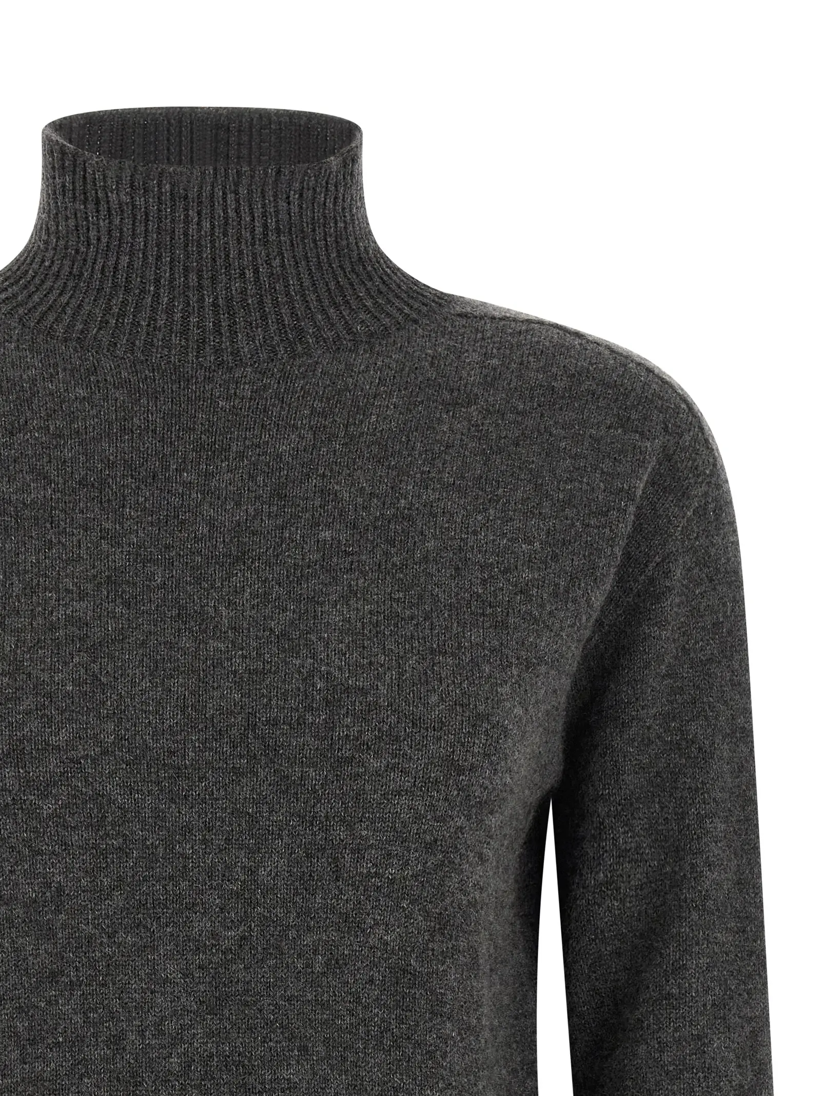 Виготовлений з 100% чистого кашеміру. Безшовна технологія виробництва. Високий комір. Довгі рукави з манжетами. Опущене плече. Бокові розрізи.