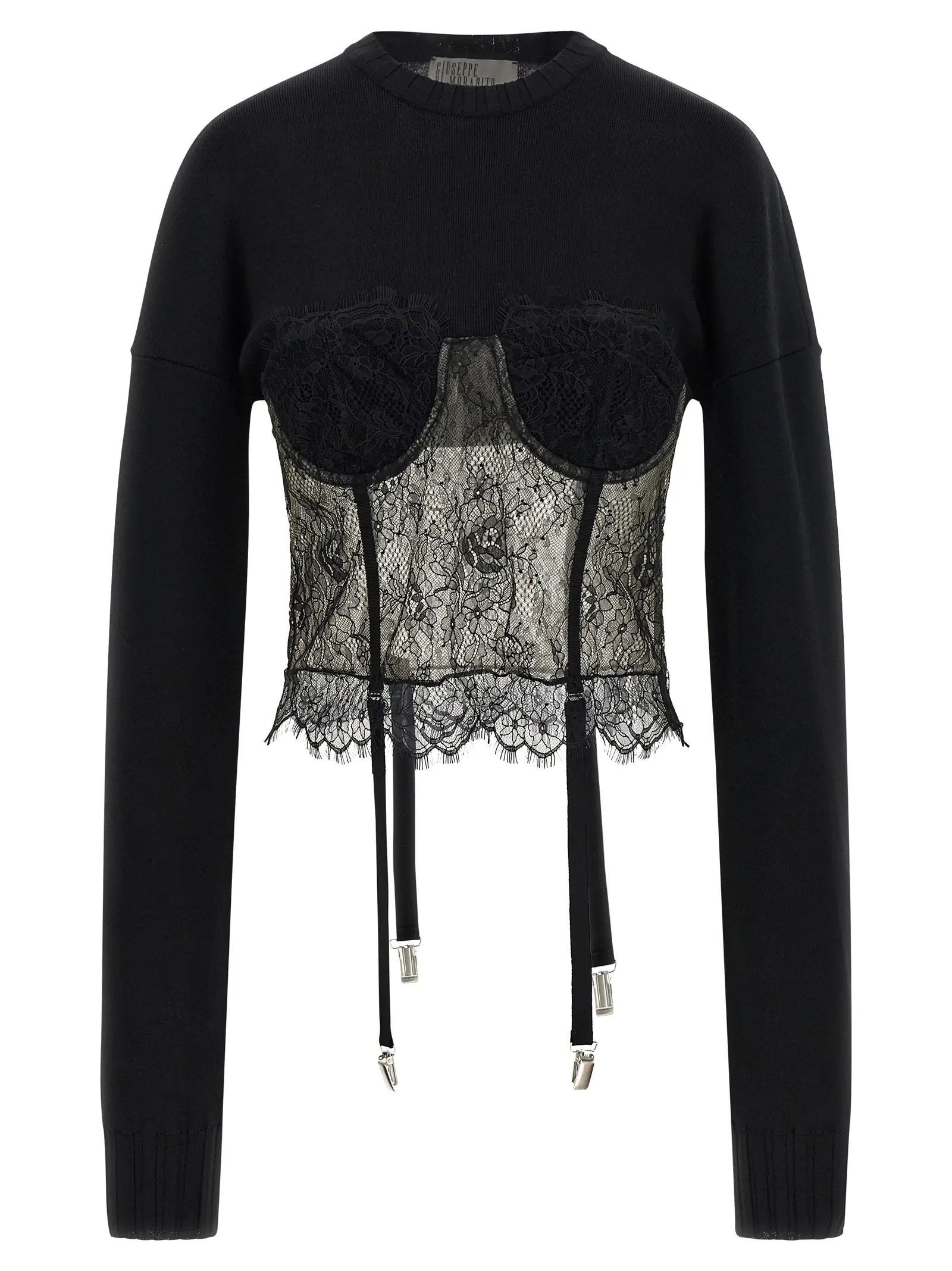 Светр з мереживними вставками Giuseppe Di Morabito чорний