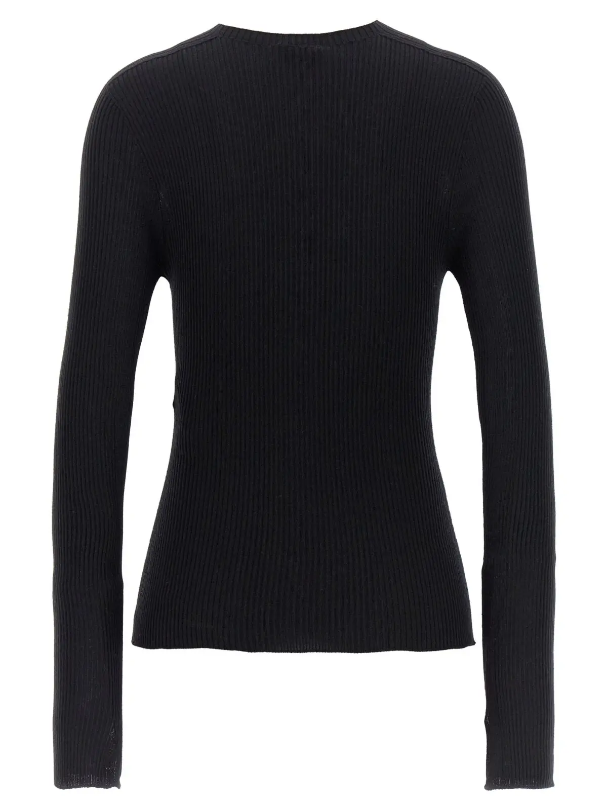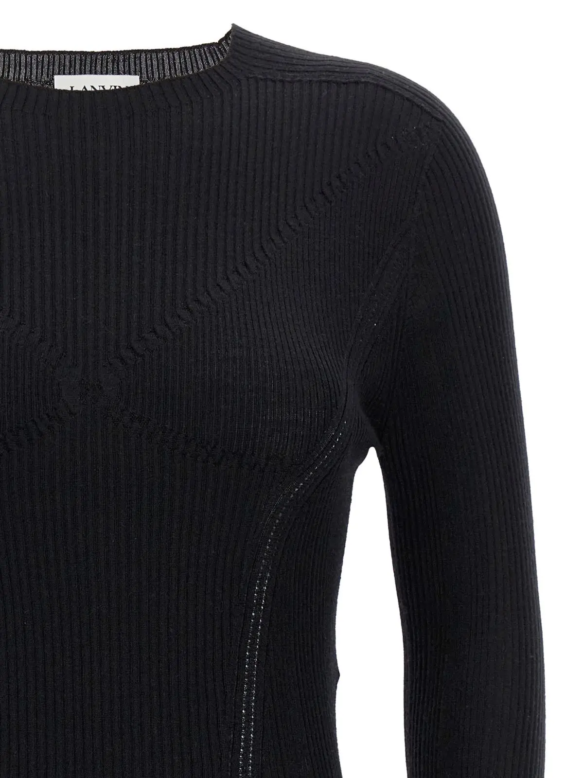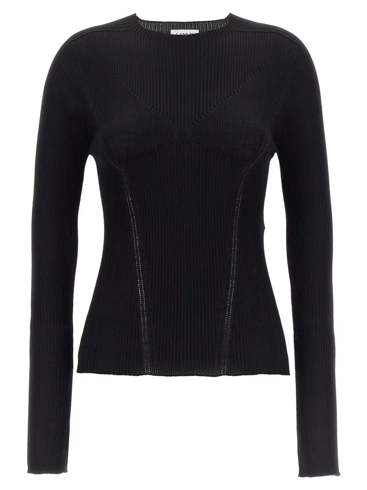 Зустрічайте ваш новий улюблений светр від Lanvin – чорний жіночий светр з ребристою в’язкою. Ця розкішна модель виконана з високоякісної суміші кашеміру, що забезпечує неперевершений комфорт та тепло. Склад матеріалу включає 35% вовни, 35% шовку та 30% кашеміру, що робить його неймовірно м’яким на дотик та приємним для тіла. Светр має довгі рукави та круглий виріз горловини, що додає класичної елегантності до будь-якого образу. Ця модель ідеально підійде для створення як повсякденних, так і вечірніх аутфітів, додавши їм нотку розкоші та вишуканості.