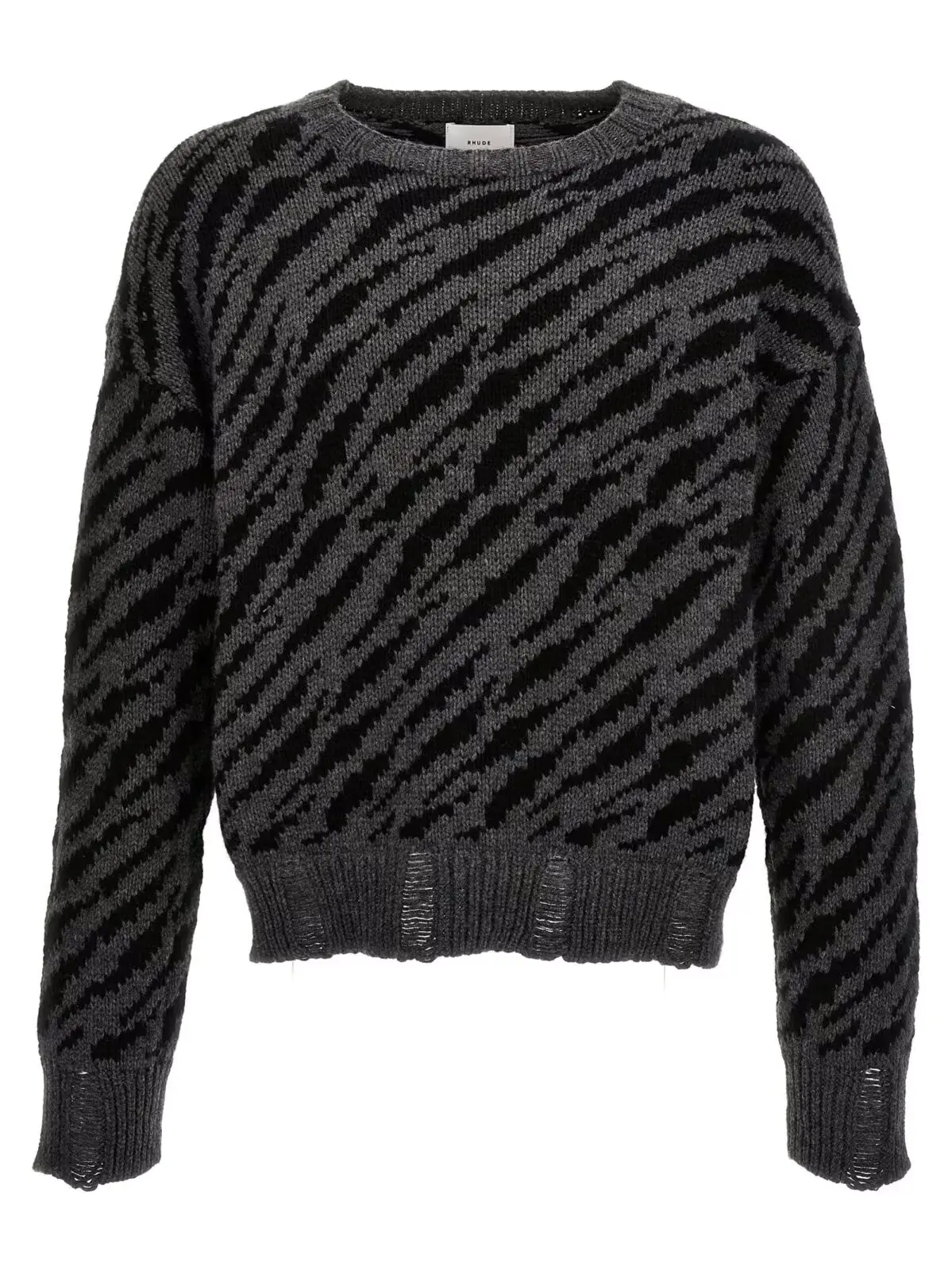 Чоловічий светр “Zebra” від Rhude поєднує в собі вишуканість та оригінальність. Виготовлений із суміші вовни та кашеміру у пропорції 70% до 30% відповідно, цей багатокольоровий светр забезпечує неперевершений комфорт та тепло. Особливу увагу привертає яскравий зебровий візерунок, виконаний методом жакарду, що додає виробу унікальності. Светр має круглий виріз, що робить його ідеальним варіантом для створення як повсякденних, так і вишуканих образів.