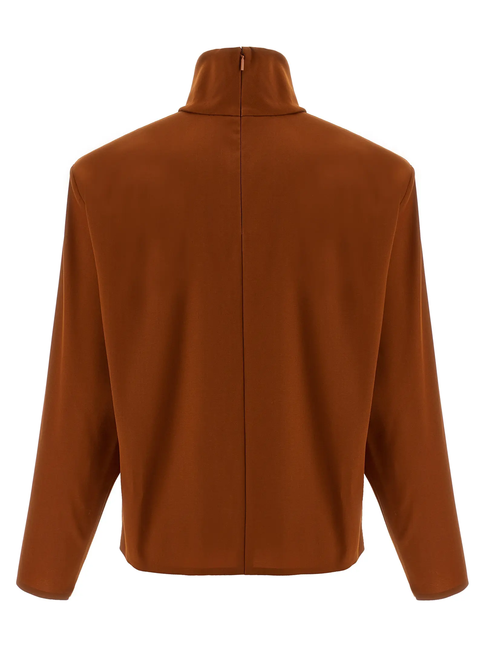 Світшот з супер органзи з еластаном. Високий комір. Структуровані плечі з підтримкою. Довгі рукави. Застібка на блискавку ззаду. Склад 55 відсотків шовку, 32 відсотки поліаміду, 13 відсотків еластану.