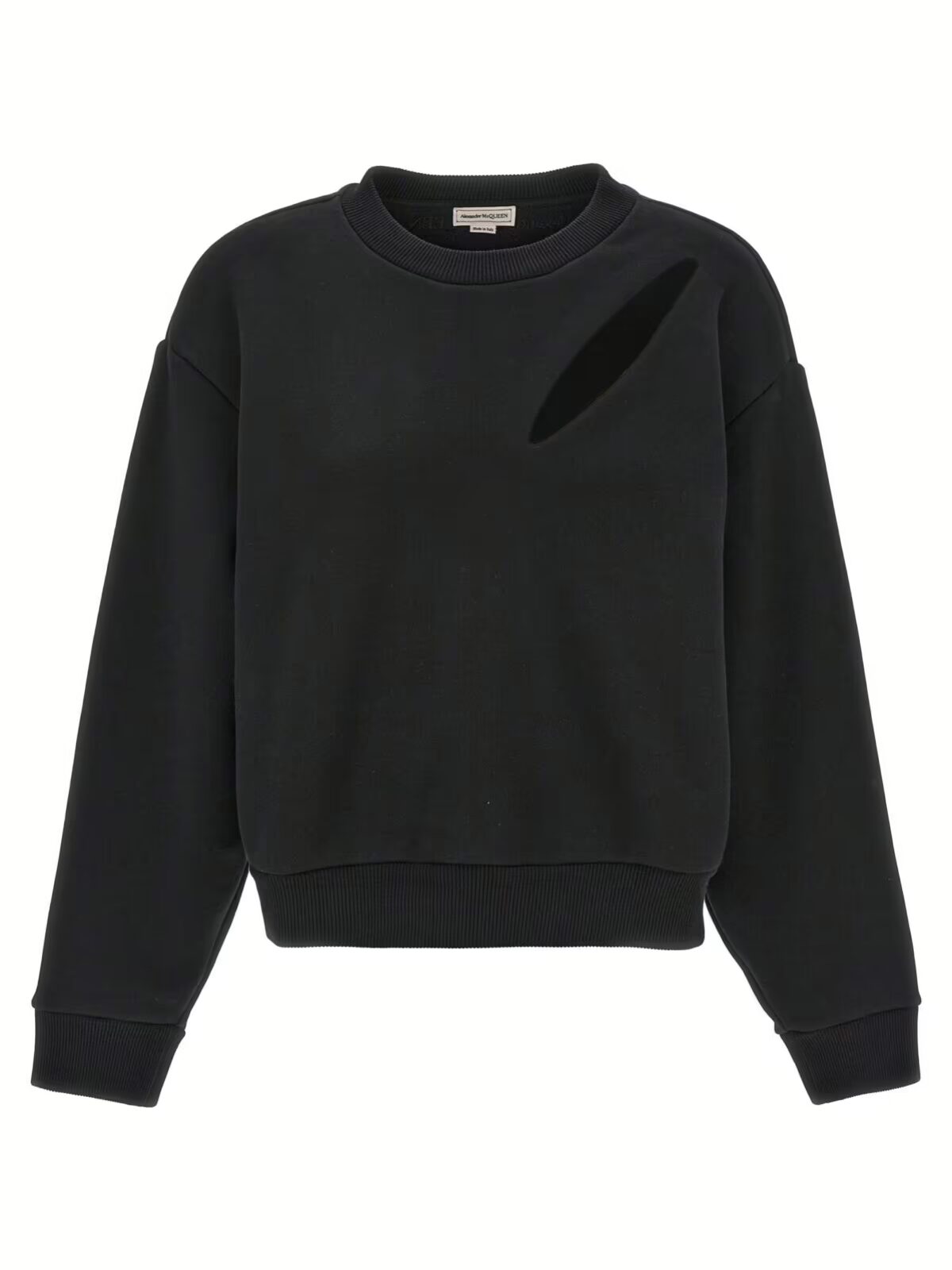 Світшот Alexander Mcqueen Cut and Sew Чорний – це втілення елегантності та стилю для сучасної жінки. Виготовлений з 100% бавовни, він забезпечує комфорт та легкість у будь-якій ситуації. Унікальна деталь – виріз на передній частині – додає цьому світшоту особливого шарму та неповторності.