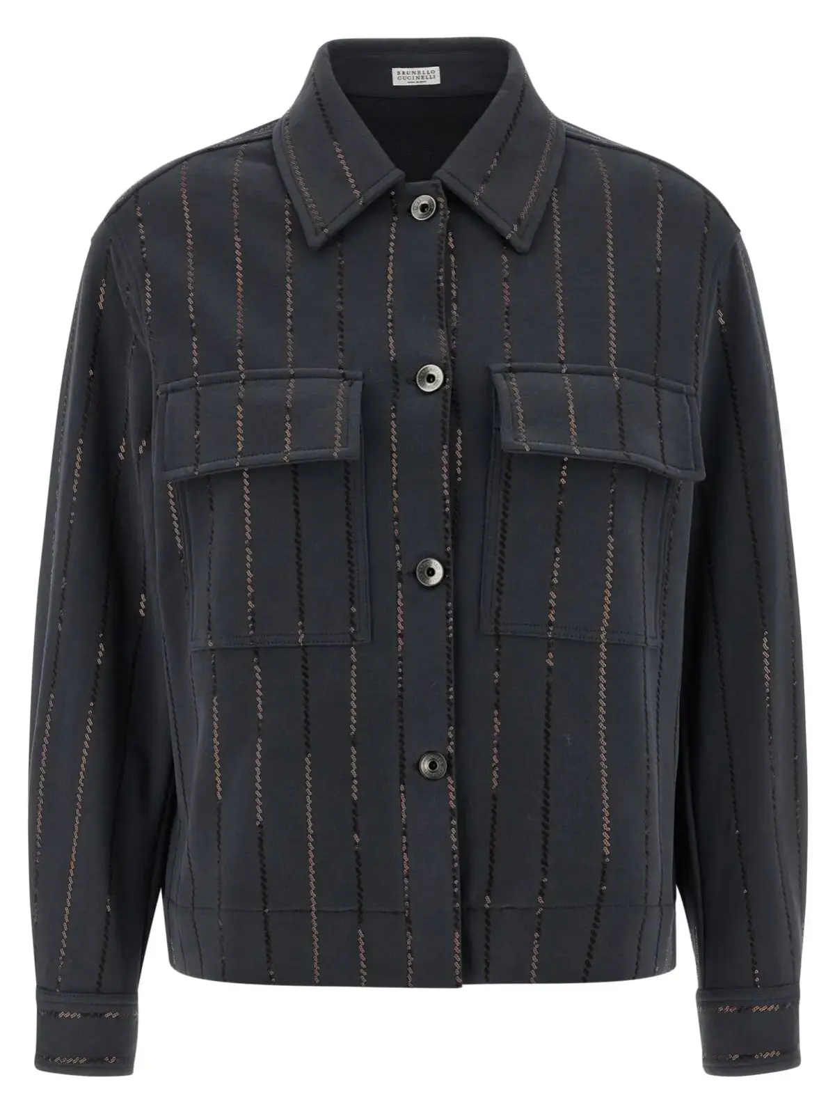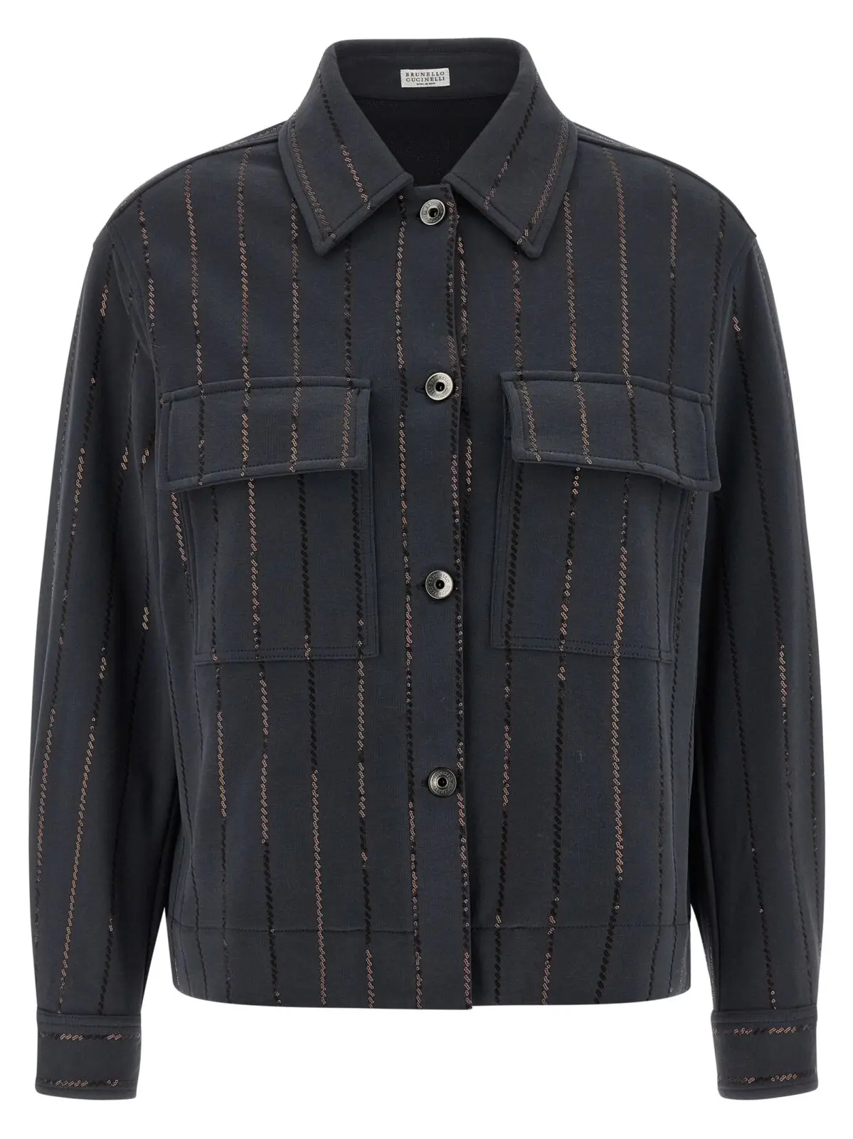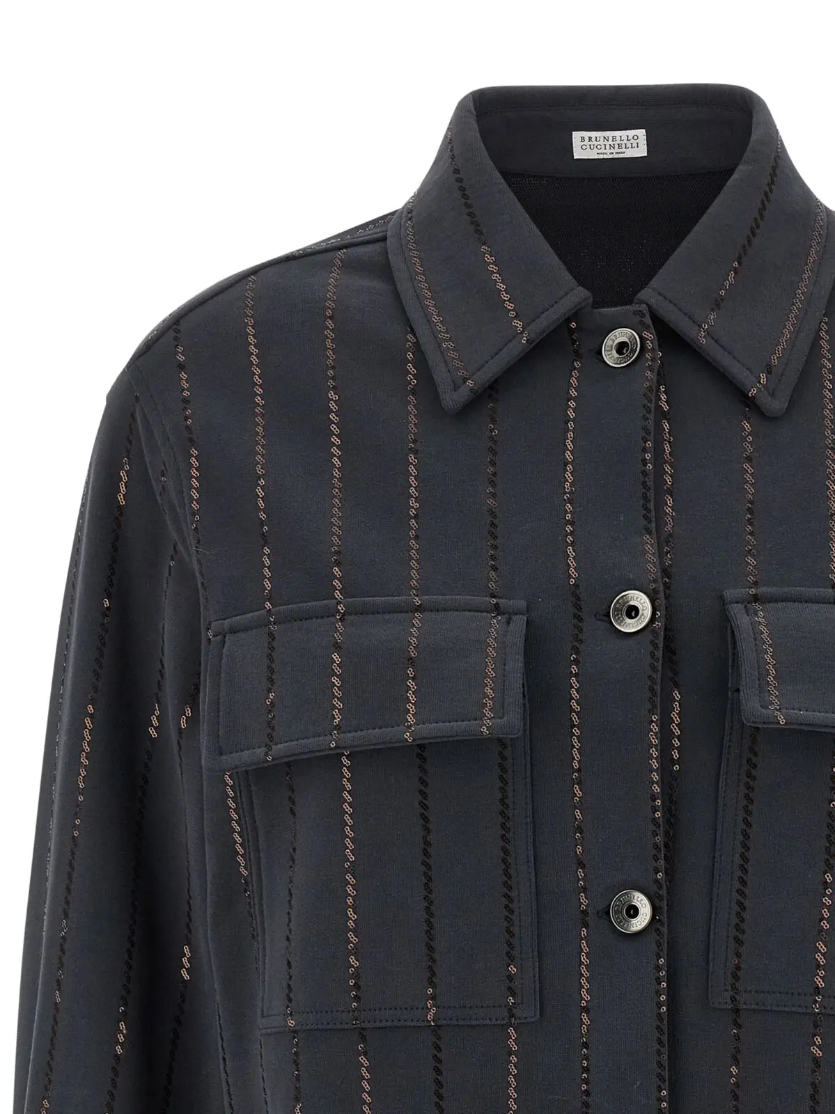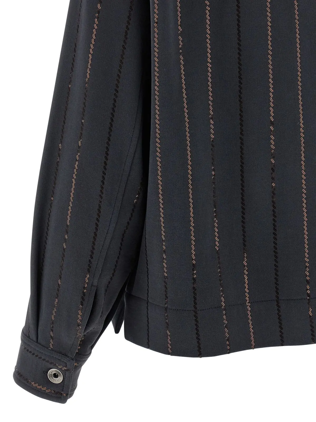 Цей світшот виконаний з високоякісної 100% бавовняної тканини з флісовою внутрішньою поверхнею, поєднує в собі комфорт і розкішний стиль. Вишуканий дизайн з коміром, передньою застібкою на ґудзики, кишенями та смугастою паєтковою деталлю підкреслює інноваційність і універсальність, створюючи неперевершений образ статусу та елегантності.