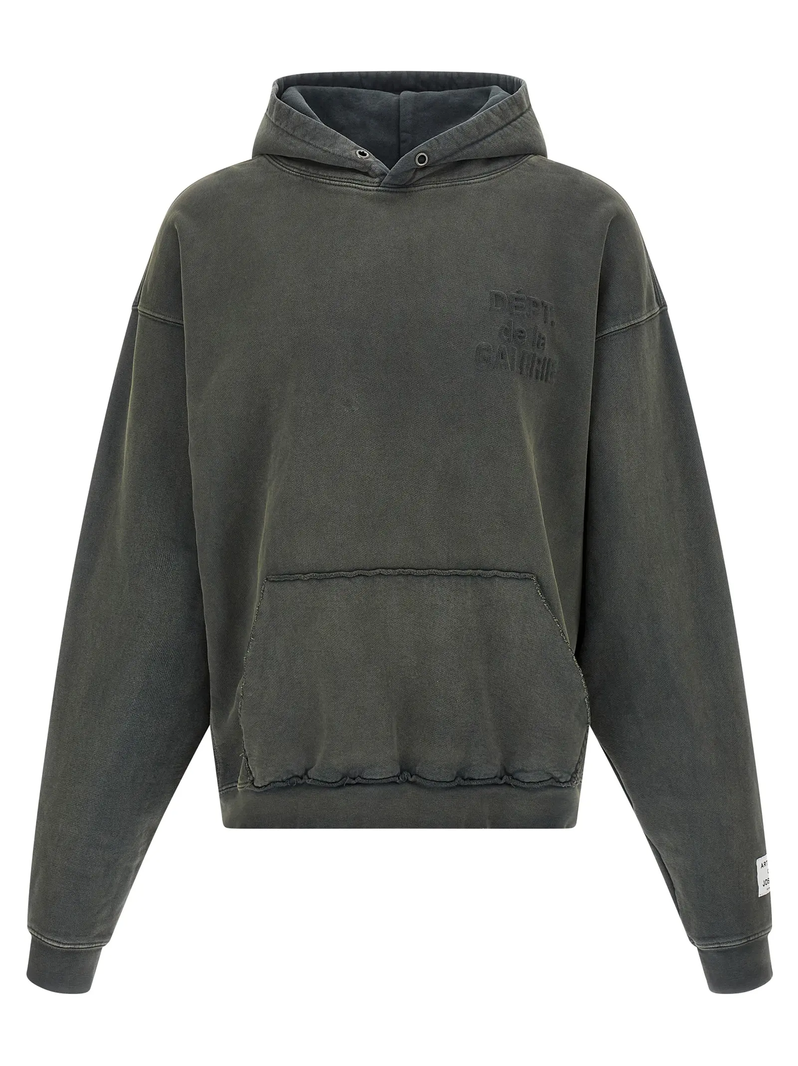 Кишеня-кенгуру та зрізи з необробленими краями. Довгі рукави з манжетами. Склад 100% бавовна.
