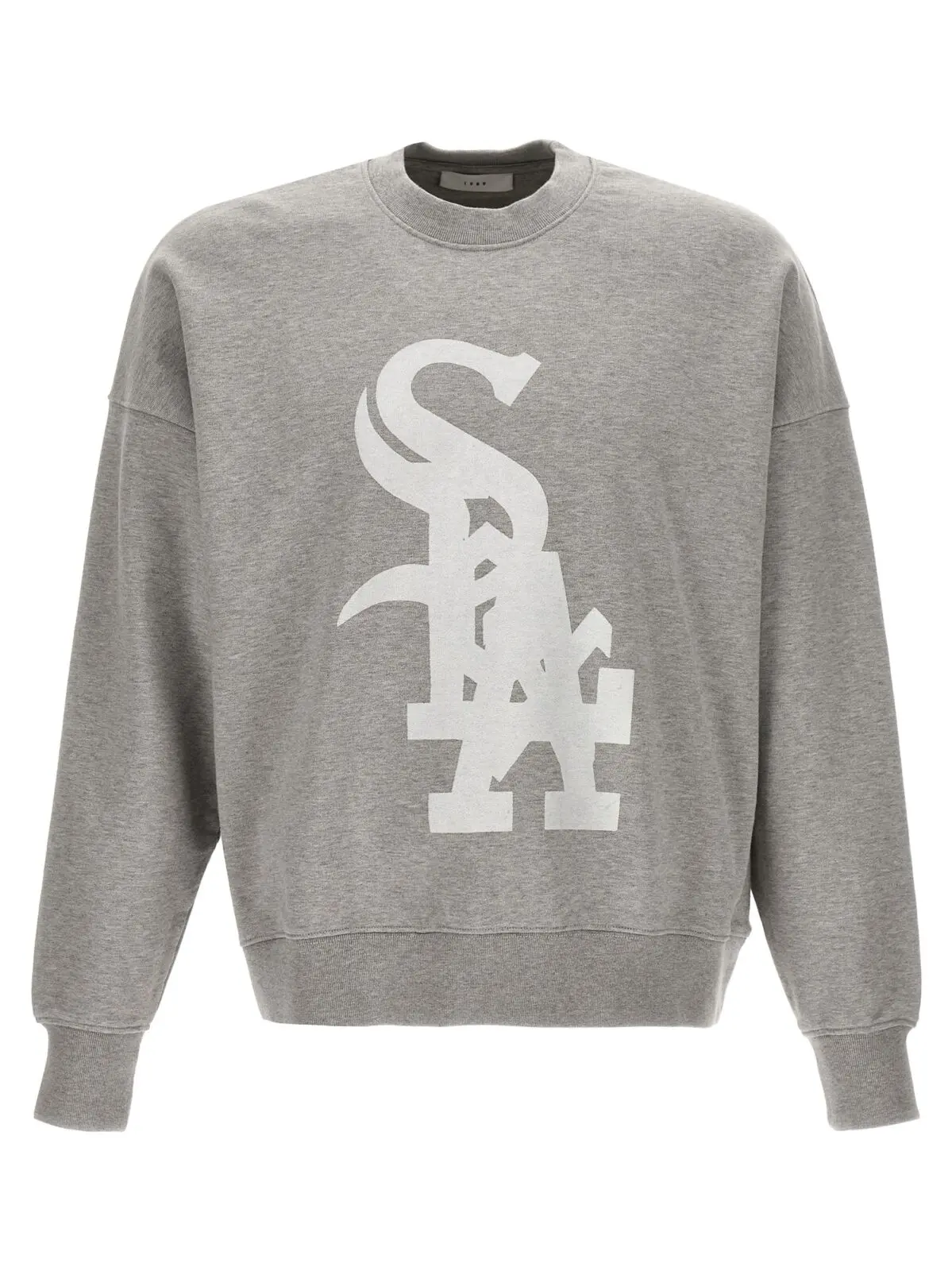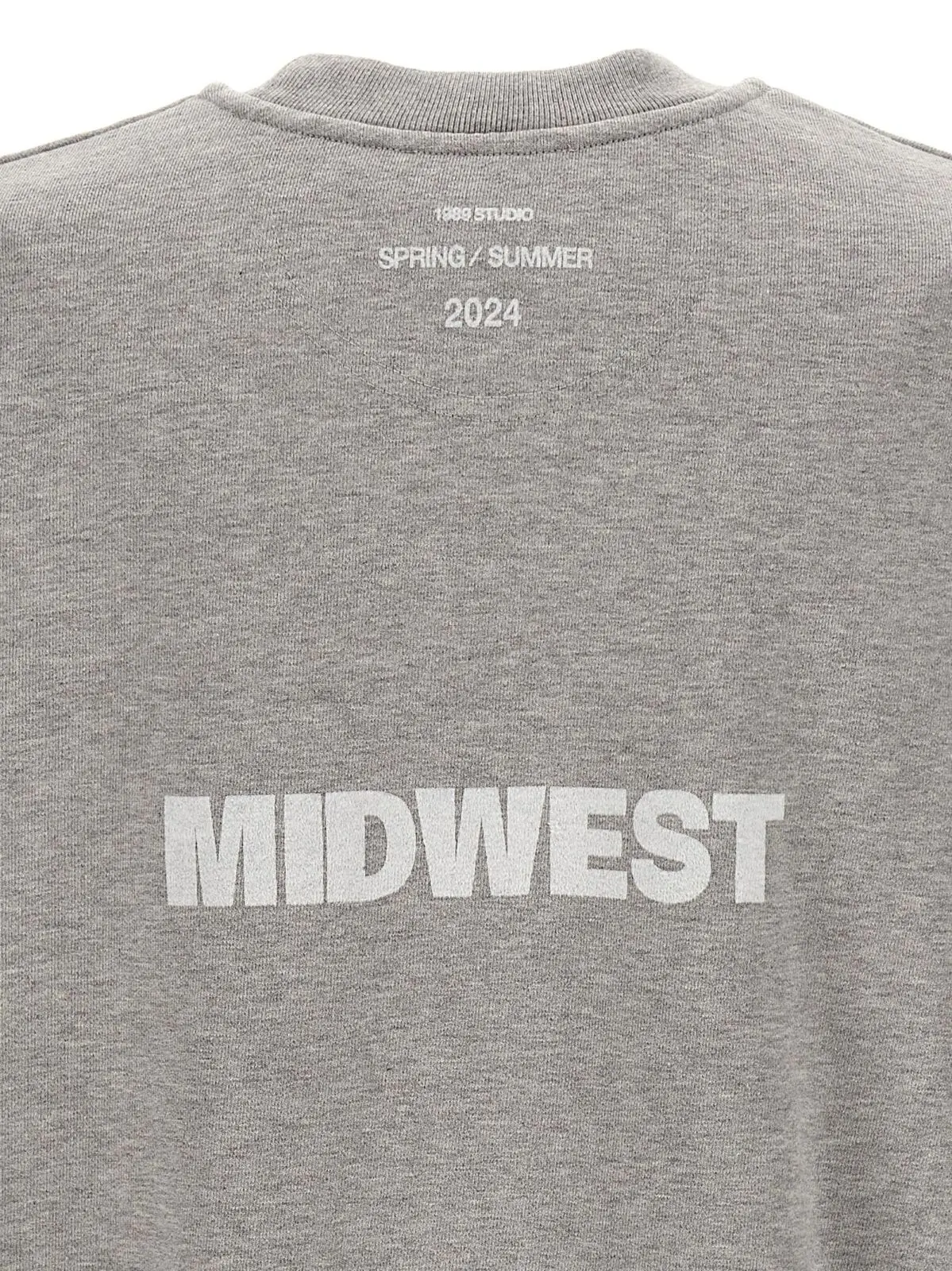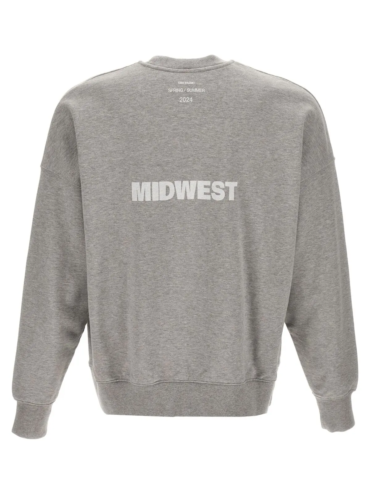 Чоловічий світшот ‘Midwest’ від Midwest 1989 Studio у сірому кольорі виконаний з щільної бавовни з натуральної щетини. Має круглий виріз горловини та декорований флокованим принтом ззаду і спереду. Склад: 100% бавовна. Втілює стиль та комфорт, ідеально підходить для повсякденного використання.