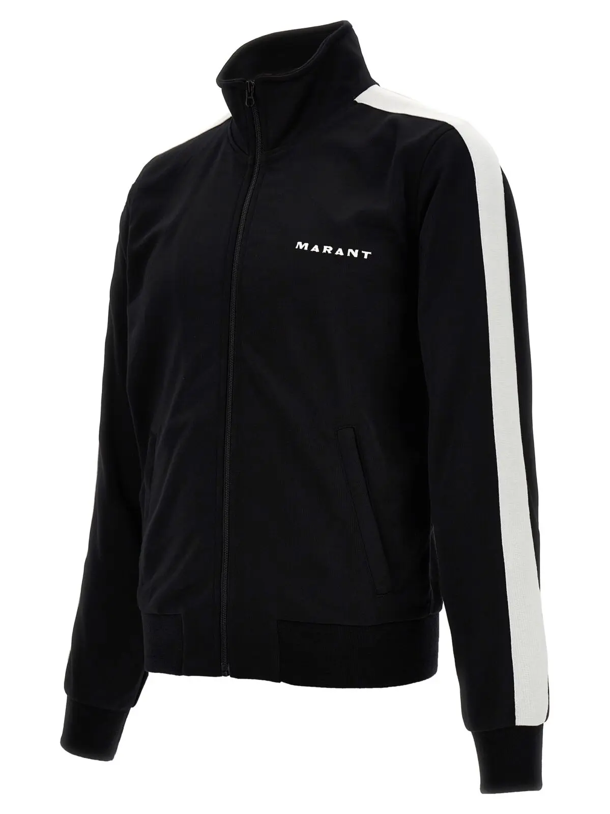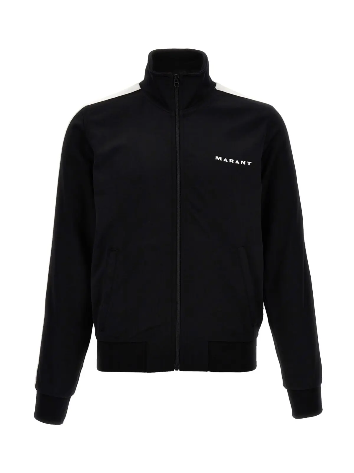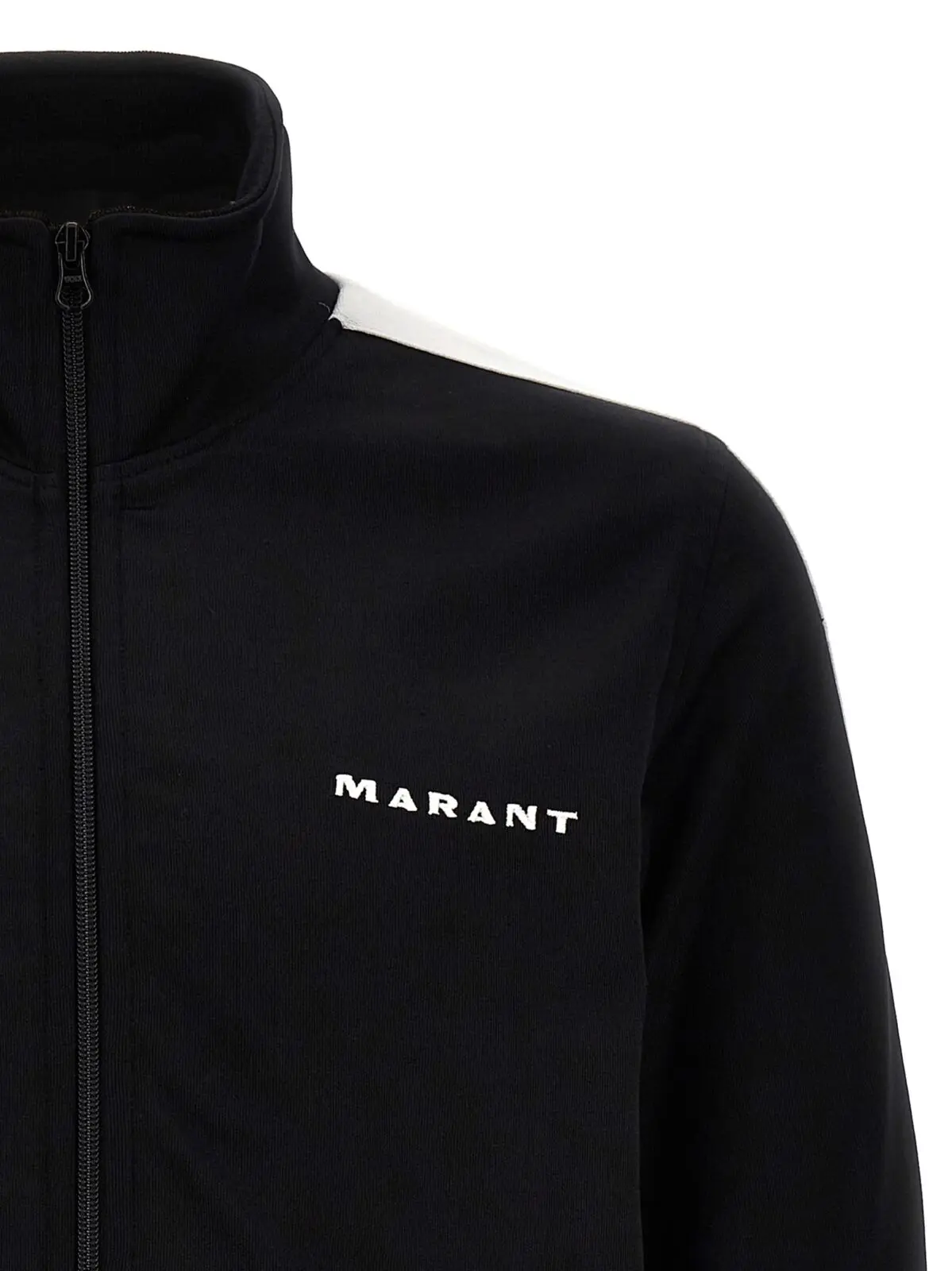 Чоловіча толстовка Ronny Marant у чорно-білому кольорі виготовлена з технічної тканини на основі бавовни та поліестеру (40% бавовна, 60% поліестер). Модель оснащена вишивкою логотипу на фронтальній частині, контрастними смугами на рукавах, замком-блискавкою та кишенями. Довгі рукави завершуються манжетами.