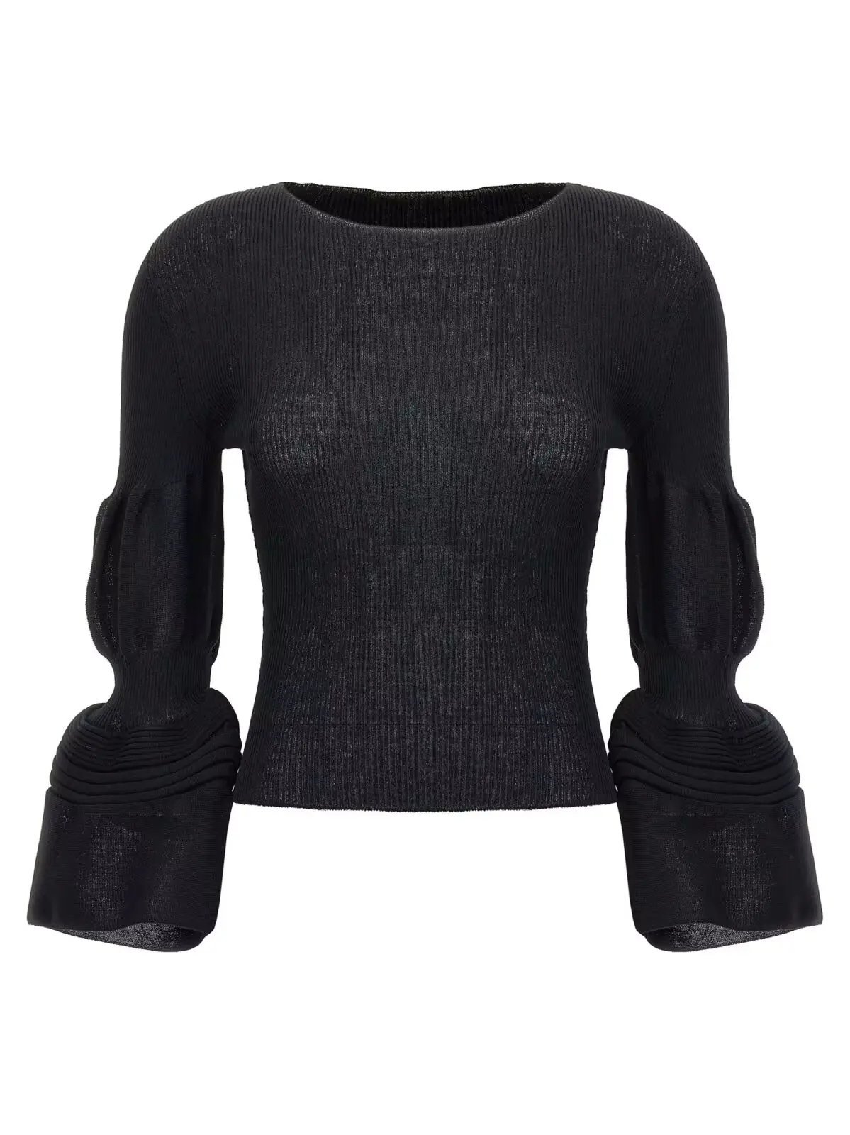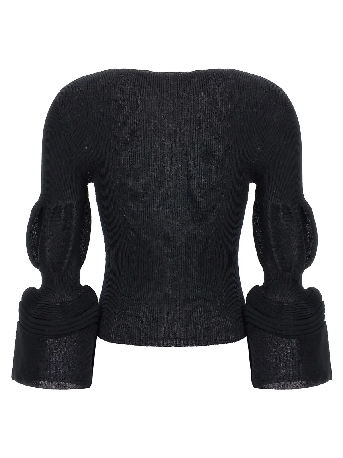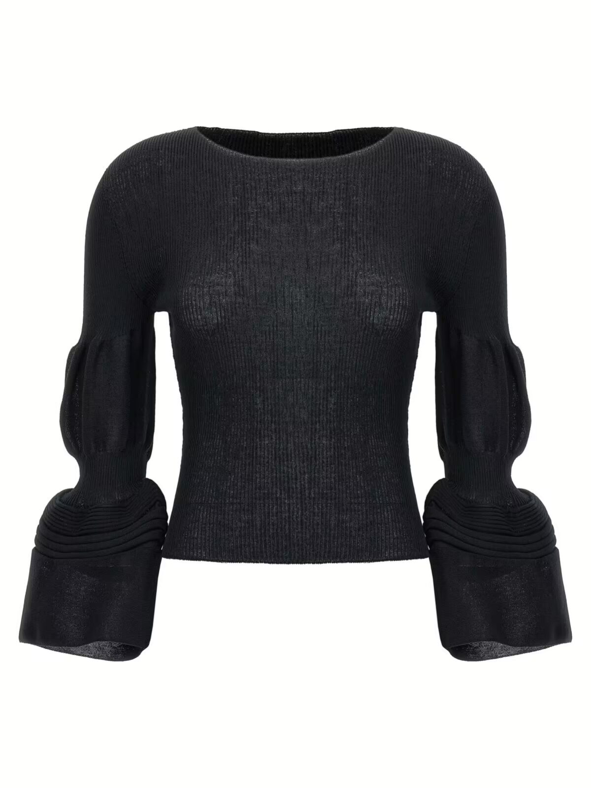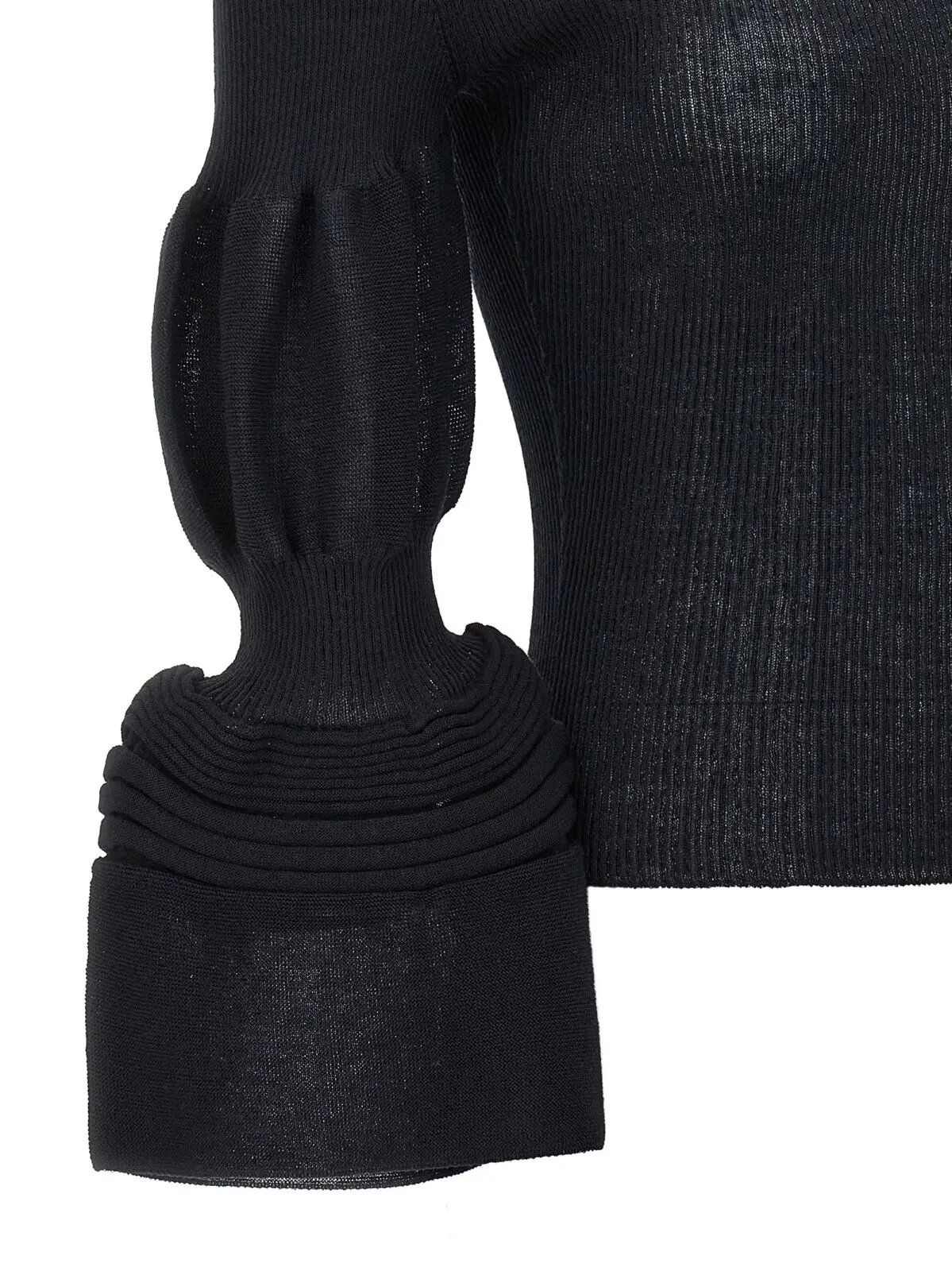 Елегантний топ “Assemblage branch” від Issey Miyake в чорному кольорі – це зразок жіночності та стилю. Виконаний із суміші поліестеру (77%) та рамі (23%), цей в’язаний топ має довгі рукави з оригінальним пухнастим ефектом, що надає образу особливої вишуканості. Круглий виріз горловини додає елемент класичності.