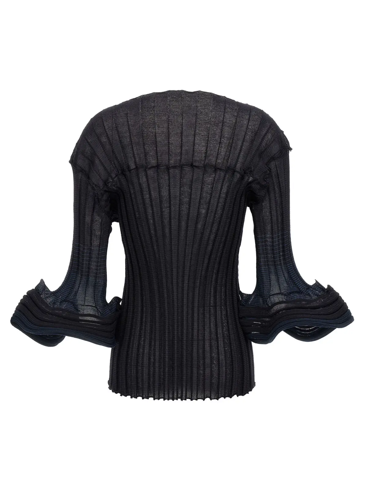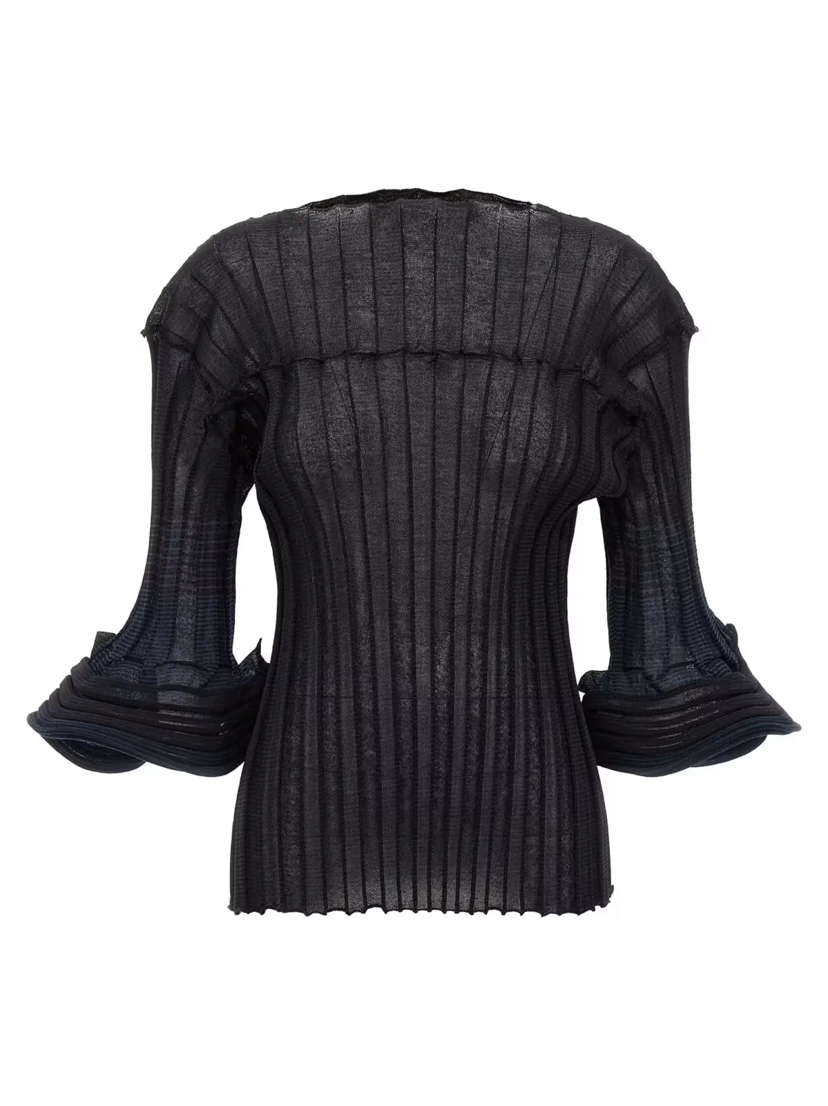 Відчуйте елегантність і витонченість з топом Issey Miyake Asagao у глибокому синьому відтінку. Цей унікальний верх має рифлену текстуру, що надає йому сучасного вигляду, а округлий виріз і рукава 3/4 підкреслюють жіночність та стиль. Склад матеріалу, що поєднує 54% поліестеру, 33% віскози та 13% еластану, забезпечує не тільки неперевершену м’якість, але й відмінну еластичність, що сприяє комфортному носінню протягом усього дня. Цей топ ідеально підходить для створення як повсякденних, так і більш урочистих образів, надаючи вам впевненості та статусу. Інноваційний підхід Issey Miyake до дизайну поєднує сучасність із класикою, а екологічні матеріали роблять цей продукт не лише стильним, але й відповідальним вибором для свідомих споживачів. Оберіть Issey Miyake Asagao та підкресліть своє прагнення до розкоші і унікальності в кожному моменті.