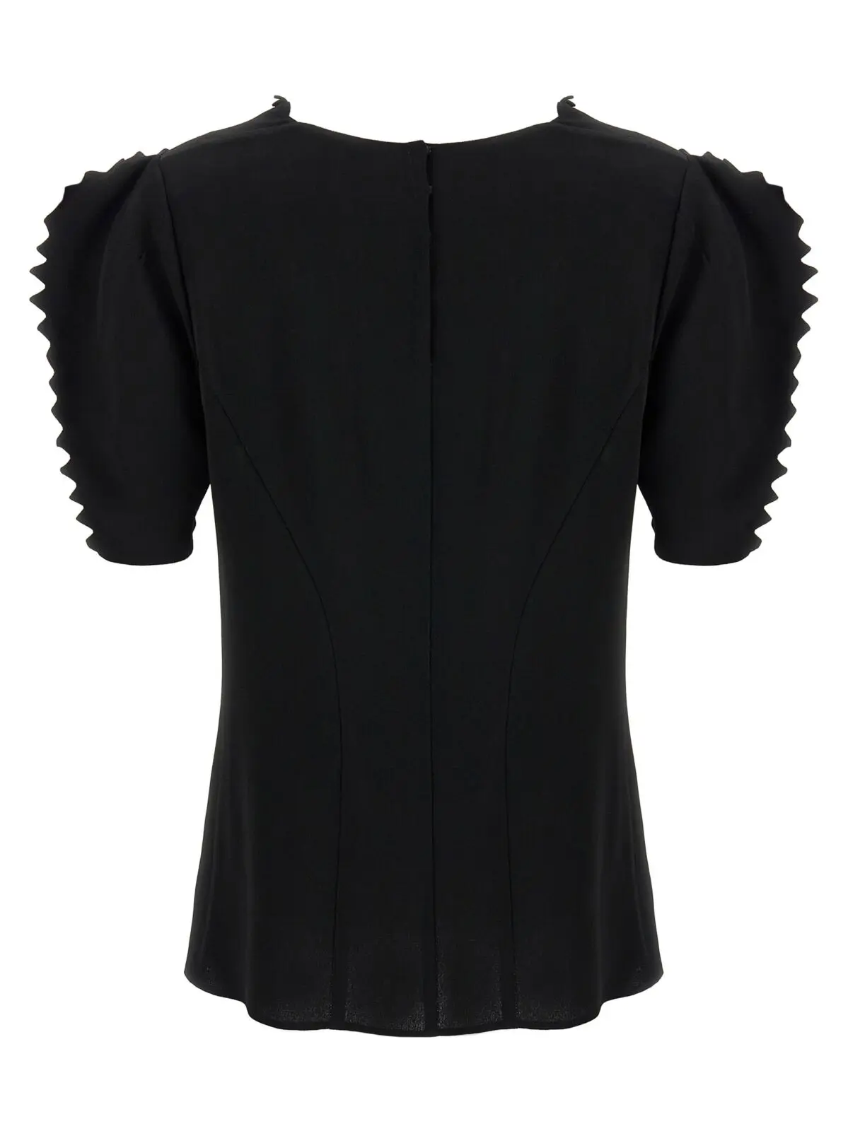 Вишуканий жіночий топ із каді з віскози, що вирізняється елегантним квадратним вирізом, витонченими передніми складками та драпіруванням, а також оригінальними короткими рукавами-буфами. Ідеальне поєднання інноваційного дизайну, бездоганного крою та універсальності для створення статусного образу.