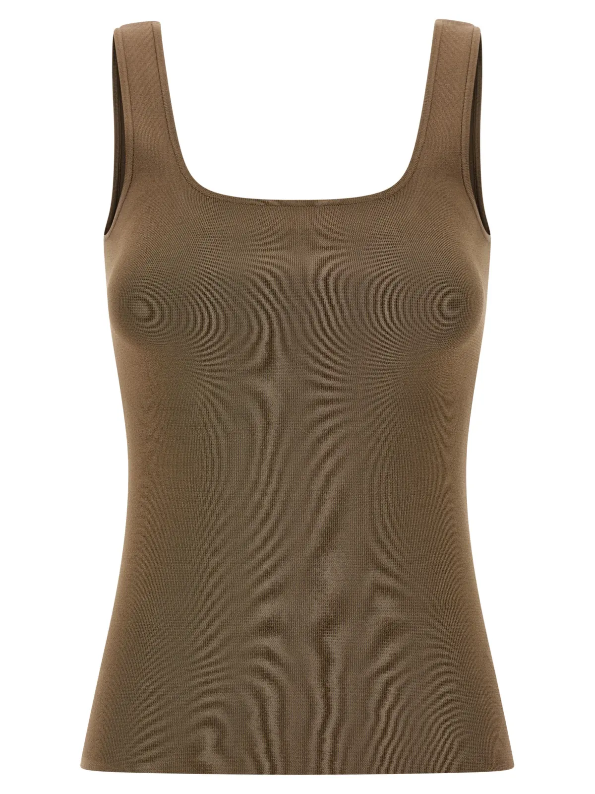 Виготовлено з 83% віскози та 17% поліестеру. Модель з приталеним кроєм. Квадратний виріз спереду та ззаду. Широкі бретелі на плечах.