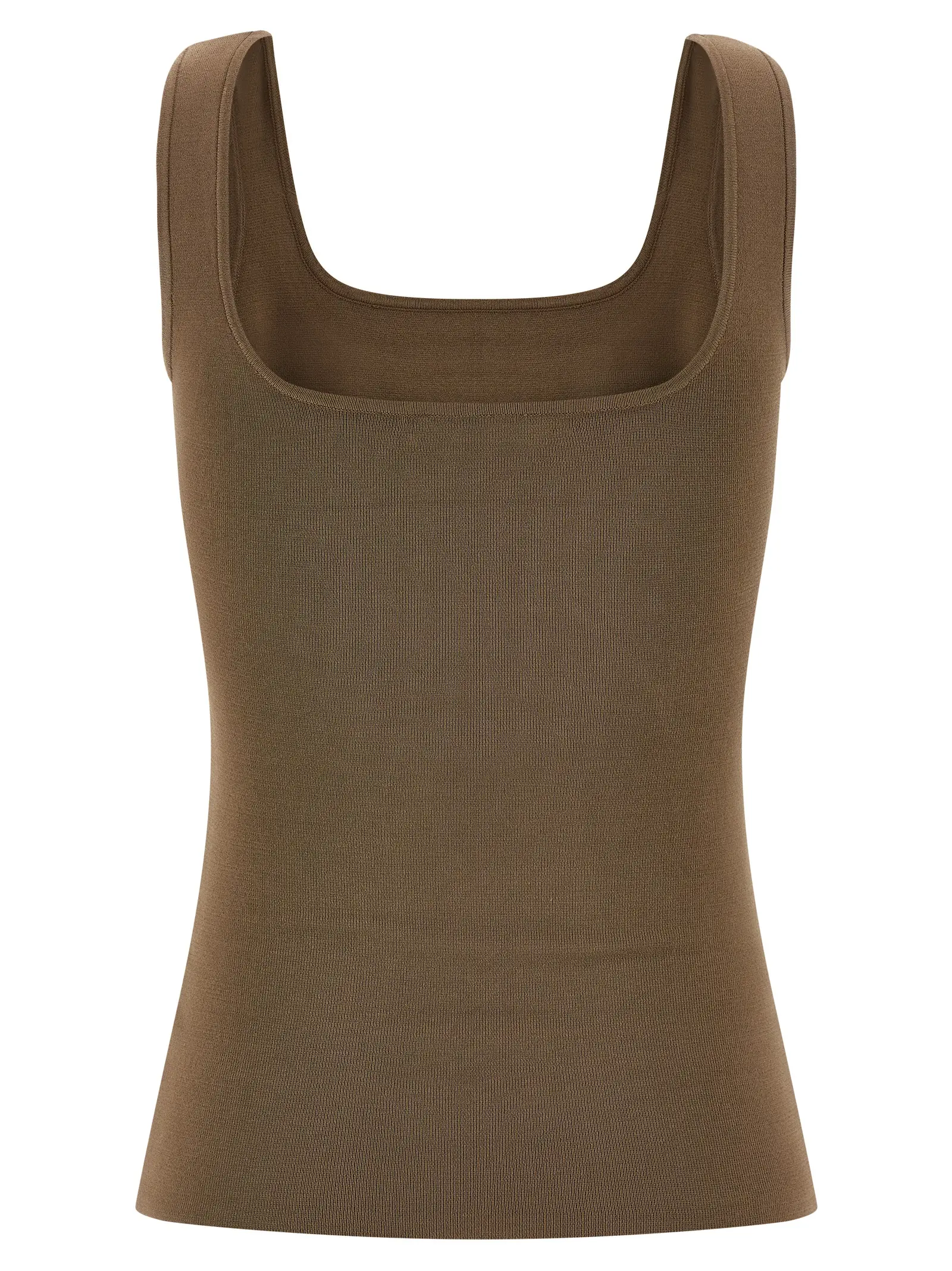 Елегантний жіночий топ із віскози поєднує в собі ніжність натуральних матеріалів і інноваційну міцність поліестеру, створюючи приталений силует із вишуканим квадратним вирізом спереду та ззаду. Широкі бретелі додають комфорт і стиль, підкреслюючи статус і бездоганний смак у будь-якому образі.
