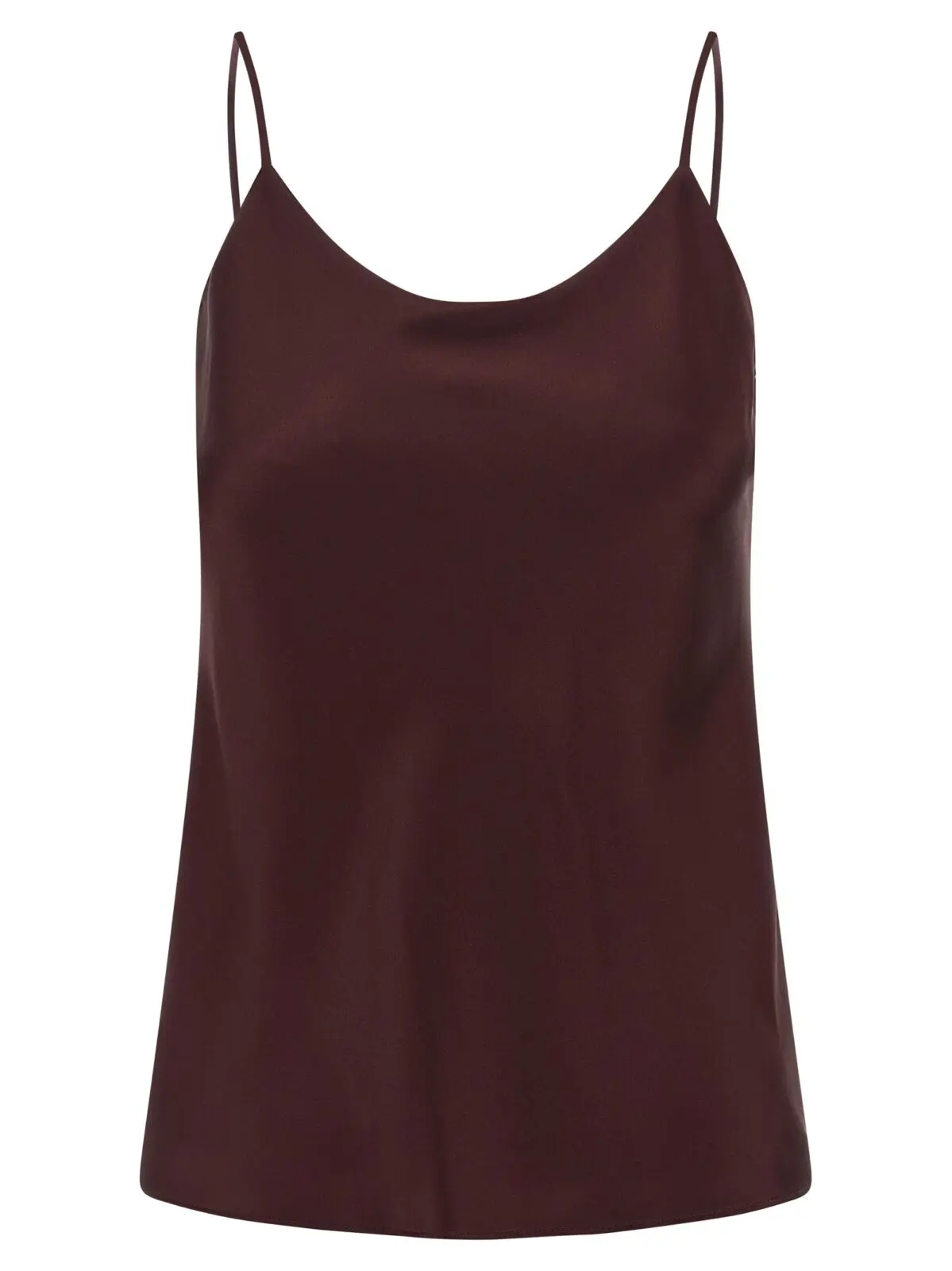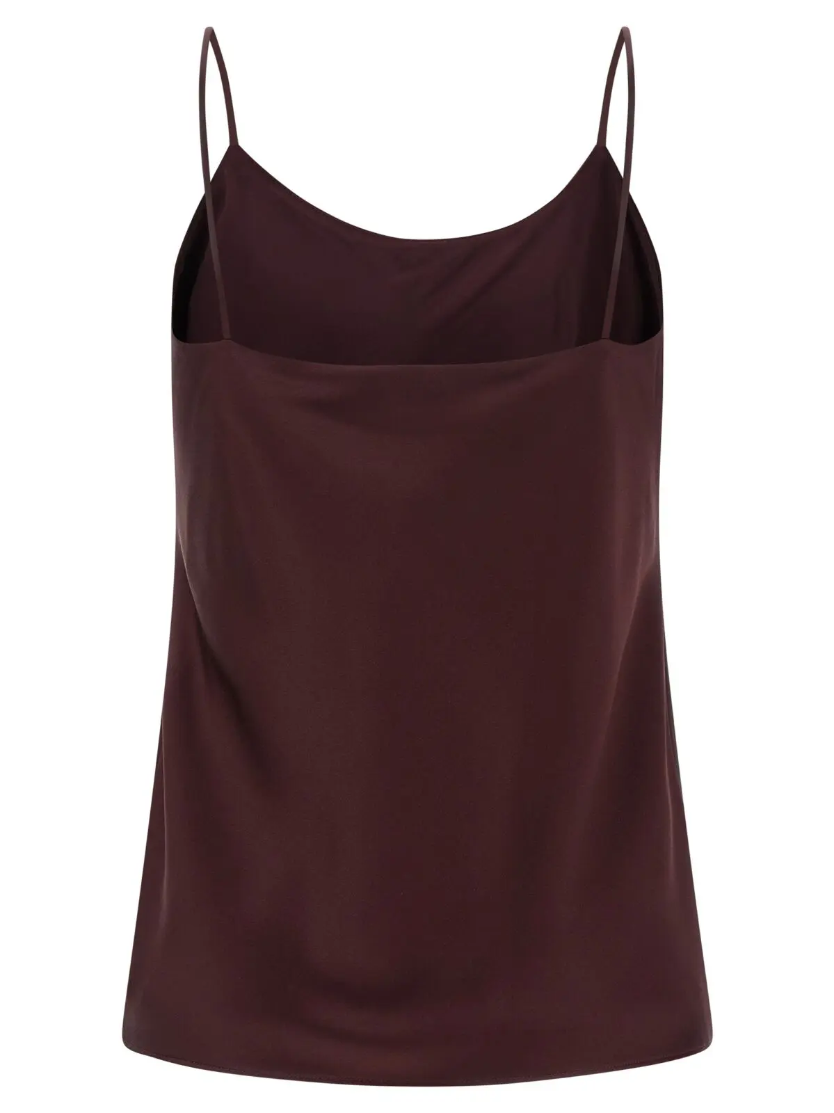 Вишуканий жіночий топ з шовку бордового відтінку, що вирізняється елегантним круглим вирізом спереду та ззаду і тонкими бретелями, поєднуючи бездоганну якість матеріалів із сучасним дизайном. Цей універсальний виріб підкреслює статус і витончений стиль, даруючи комфорт і неповторну елегантність у кожному образі.