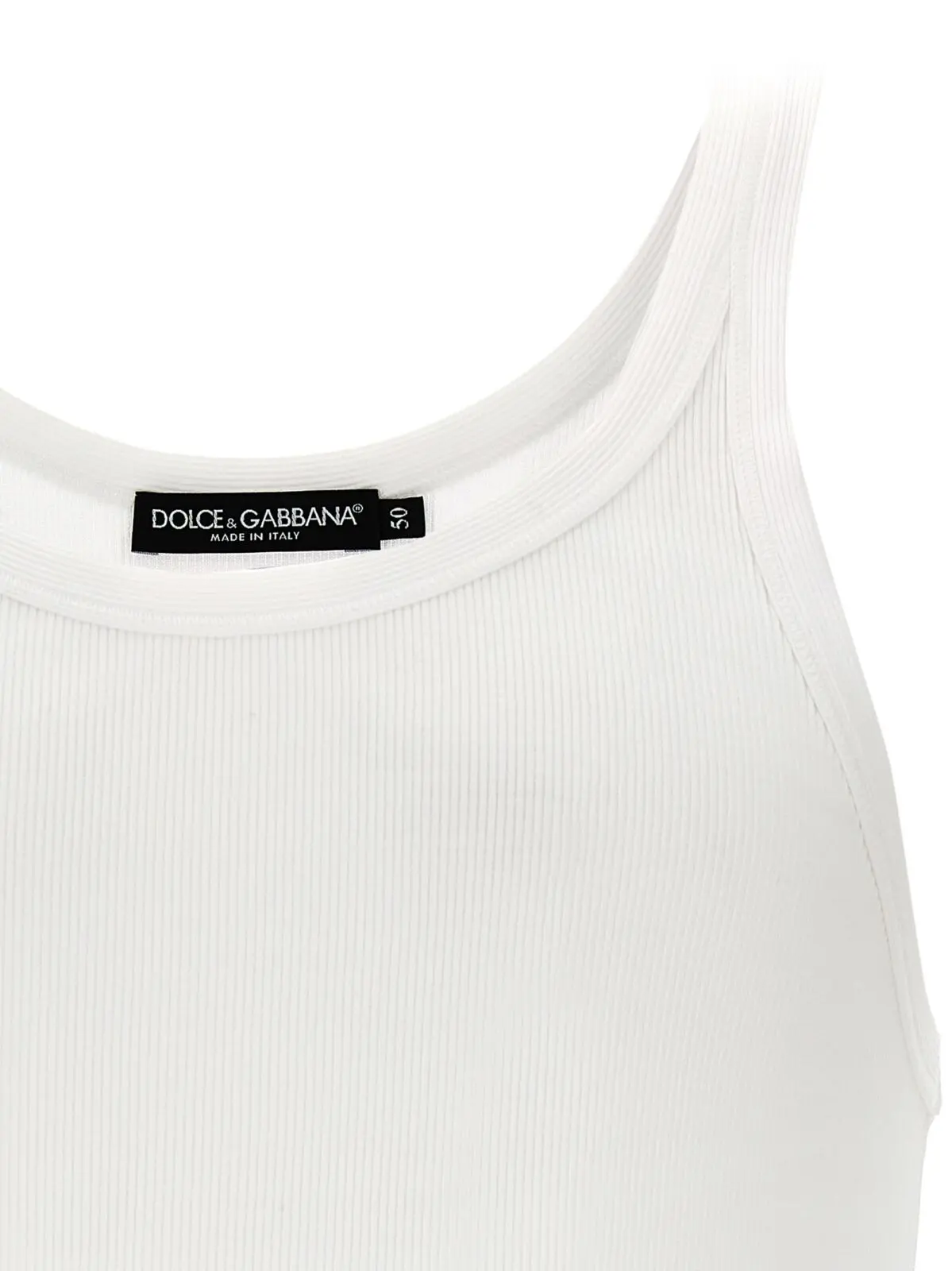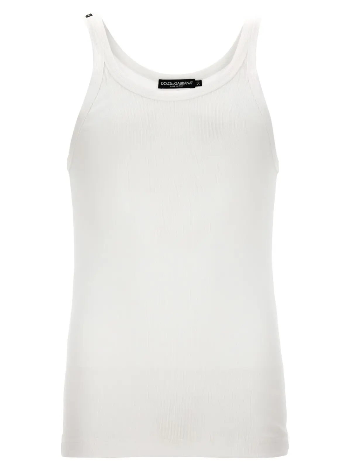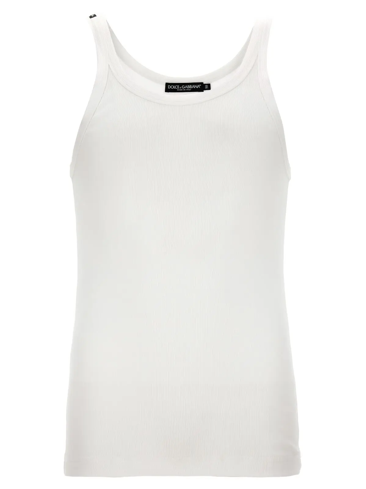 Високоякісний чоловічий топ на бретелях від Dolce & Gabbana, виконаний з 100% бавовни, гарантує неперевершений комфорт та стиль. Цей білий ребристий топ оснащений круглим вирізом, що додає елегантності будь-якому образу. Його універсальний дизайн ідеально підходить для створення як повсякденних, так і вечірніх аутфітів.
