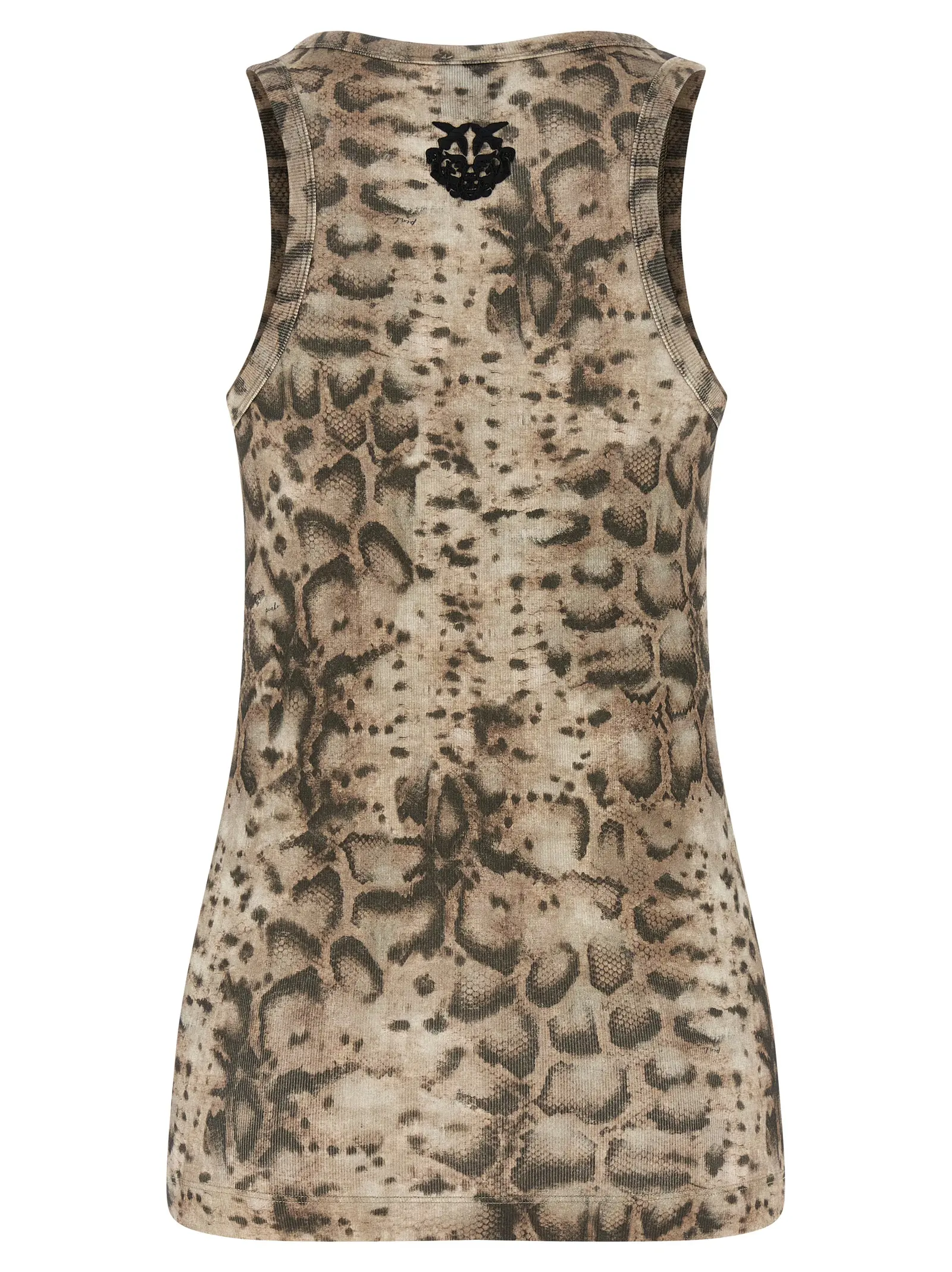Якісна бавовна з еластичними волокнами створює приємну фактуру в рубчик, яка м’яко облягає силует. Виразний анімалістичний принт гармонує з деталізованим оздобленням у вигляді вишивки. Кругла лінія вирізу додає конструкції стриманої завершеності. Тандем натурального складу та сміливого візерунка формує впевнений образ, сповнений витонченого стилю та особливої естетики.