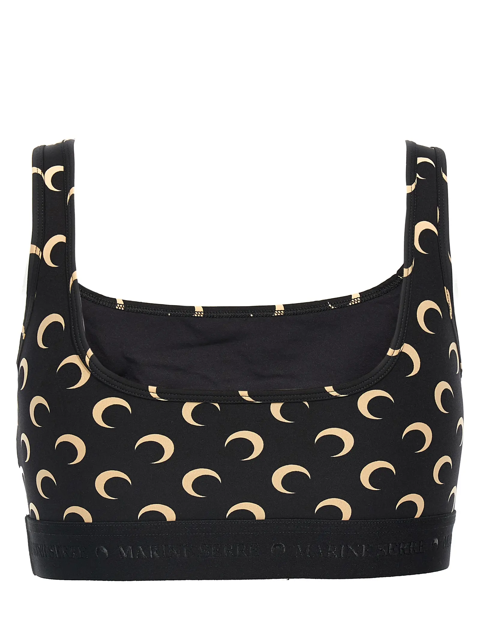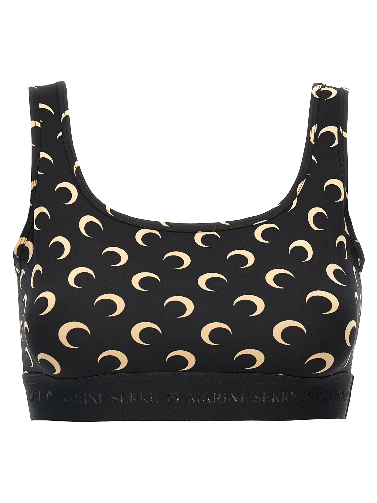 Спортивний топ із колекції преміум-класу виконаний з еластичного джерсі високої якості, що поєднує поліамід і еластан для ідеальної посадки та комфорту. Витончений чорний колір з місячним принтом надає виробу інноваційний стиль і вишуканість, а круглий виріз горловини та еластична смужка з логотипом на подолі підкреслюють його універсальність і статусність, роблячи цей топ незамінним елементом сучасного гардеробу.