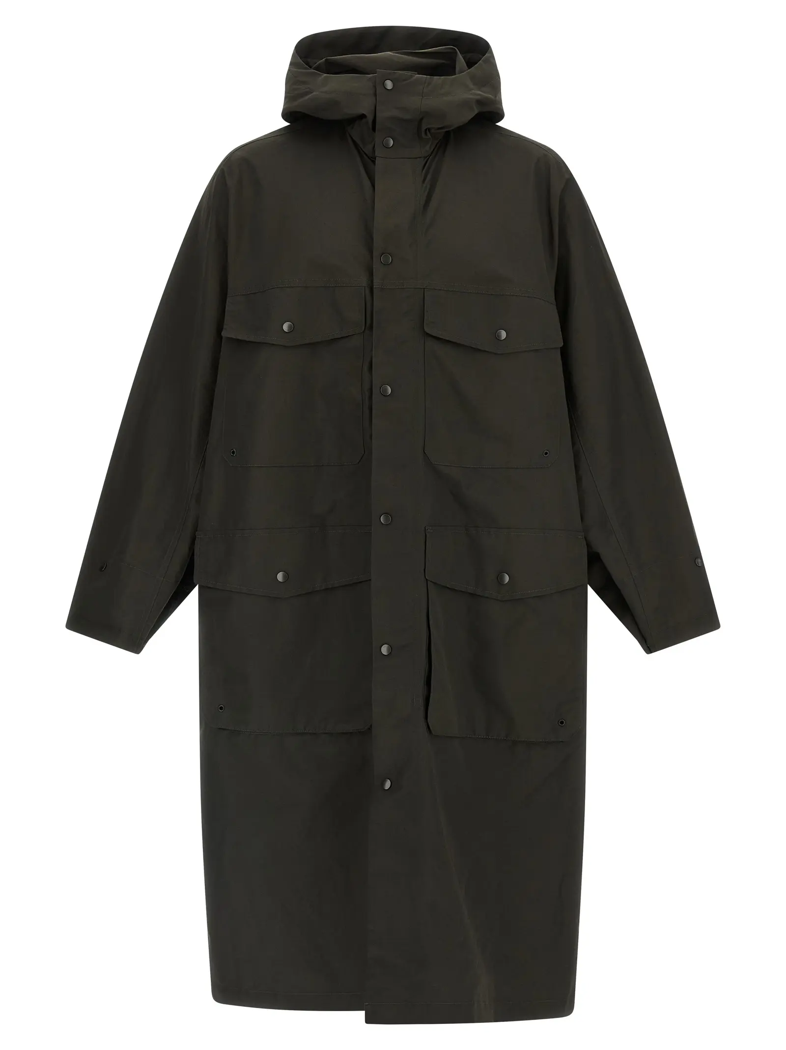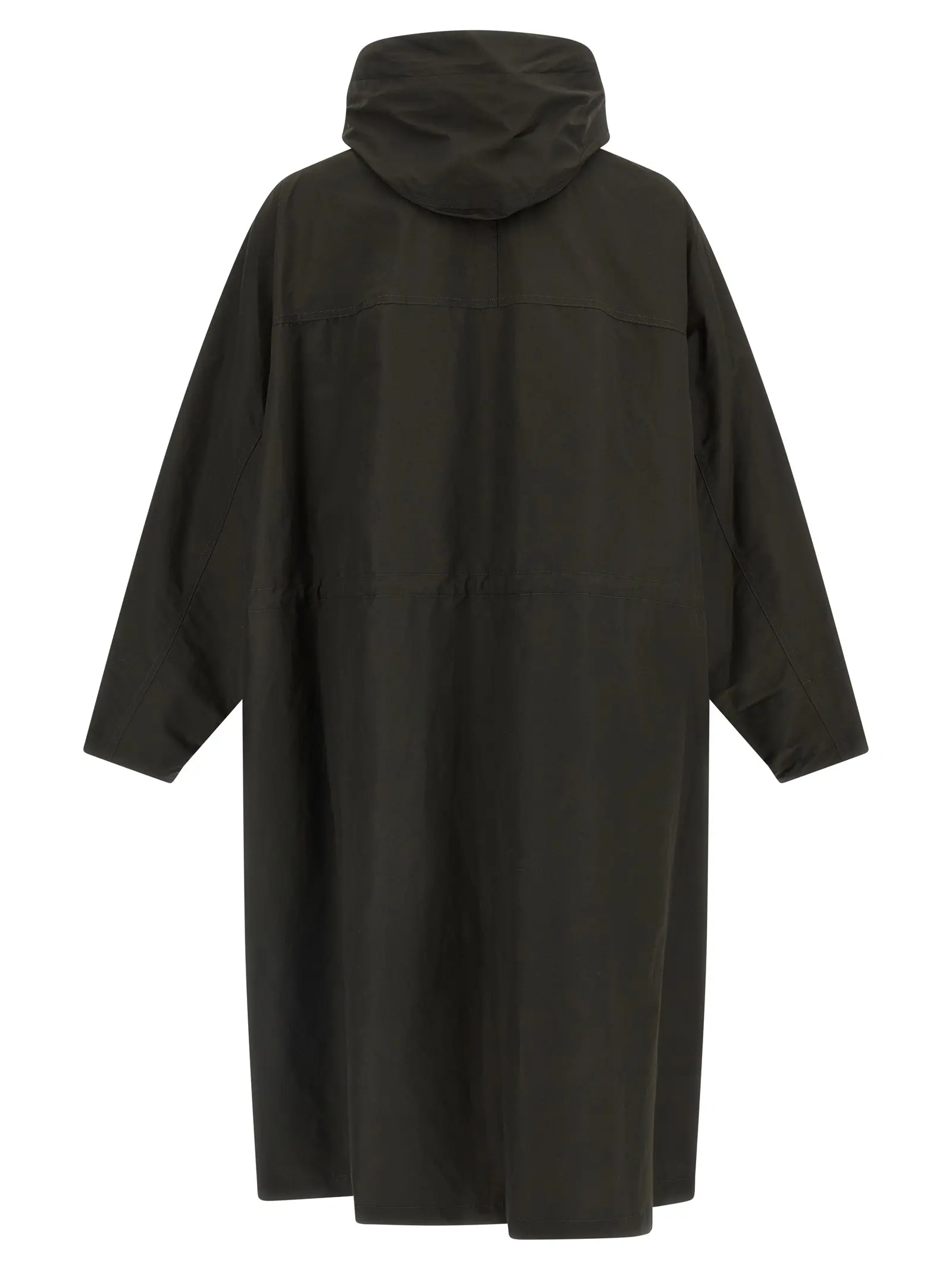 Матова фактура тканини з додаванням льону та бавовни надає виробу шляхетної природності, а водовідштовхувальне покриття гарантує естетичну бездоганність навіть під час дощу. Конструкція з глибоким капюшоном і регульованою куліскою на талії дозволяє грати з об’ємом, миттєво змінюючи настрій образу. Функціональні деталі у вигляді прихованої блискавки та накладних кишень на кнопках додають практичного змісту цій витонченій утилітарності. Кожен ґудзик на довгих рукавах завершує вивірений силует.