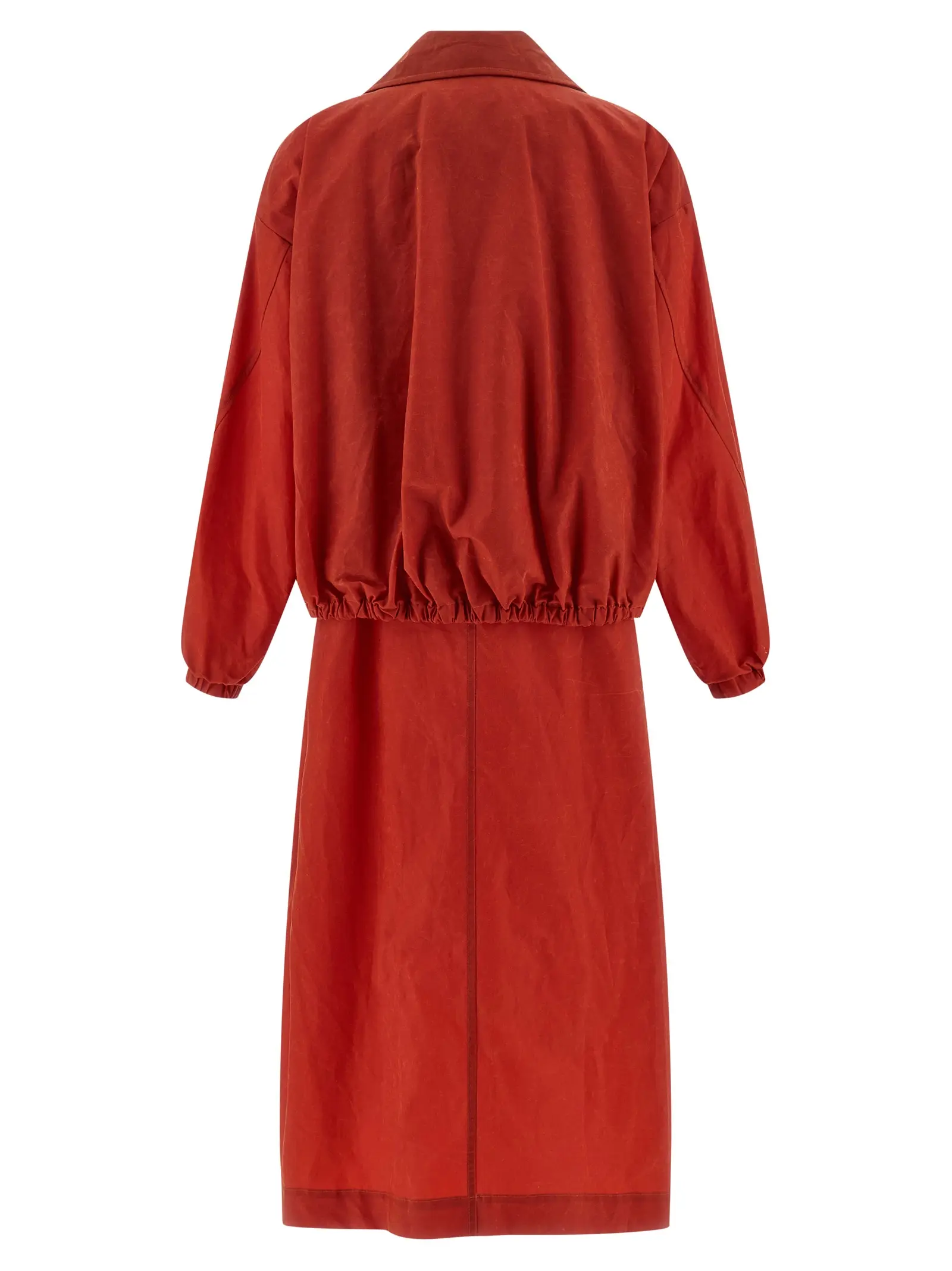 Червоний тренч MARBELL Iryna виготовлений із воскового бавовняного полотна, поєднуючи інноваційність та витонченість. Елегантний дизайн із бомберним верхом, високим коміром, довгими рукавами з манжетами та функціональними кишенями підкреслює статус і стиль, забезпечуючи універсальність і комфорт у будь-яку пору року.