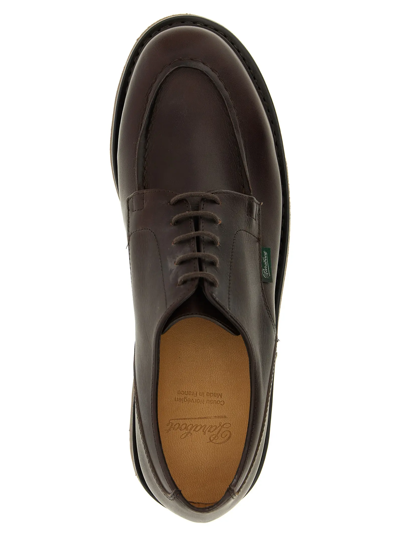 Виготовлені зі 100% телячої шкіри. Мають шнурівку. Оформлені носком під кутом 45 градусів. Виконані з норвезьким швом. Підошва гумова. Шкіра оброблена для збереження натуральності та свіжості. При тривалому зберіганні може з’являтися патина, яку можна видалити вологою тканиною.