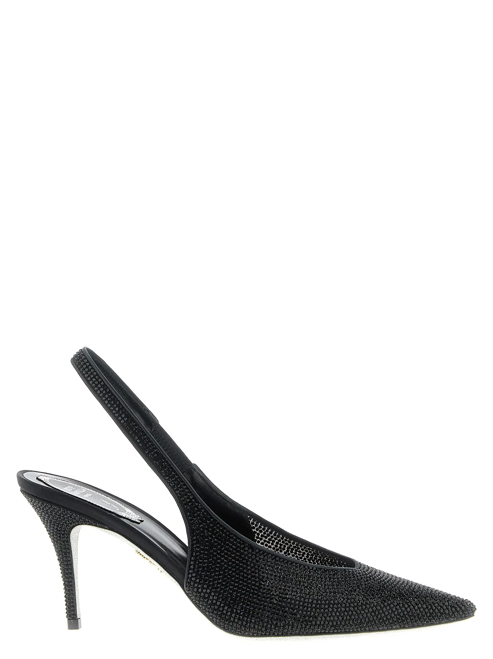 Ці витончені чорні туфлі виготовлені з тканини з бездоганним декором зі 100% скляних камінців, що додає їм неперевершеного блиску та розкоші. Вузький дизайн носка підкреслює елегантність силуету, а еластична застібка забезпечує ідеальну посадку. Високий каблук-шпилька та підошва з написом Polvere di Stelle створюють унікальний стиль, що поєднує інноваційність і бездоганну якість для впевнених у собі жінок.