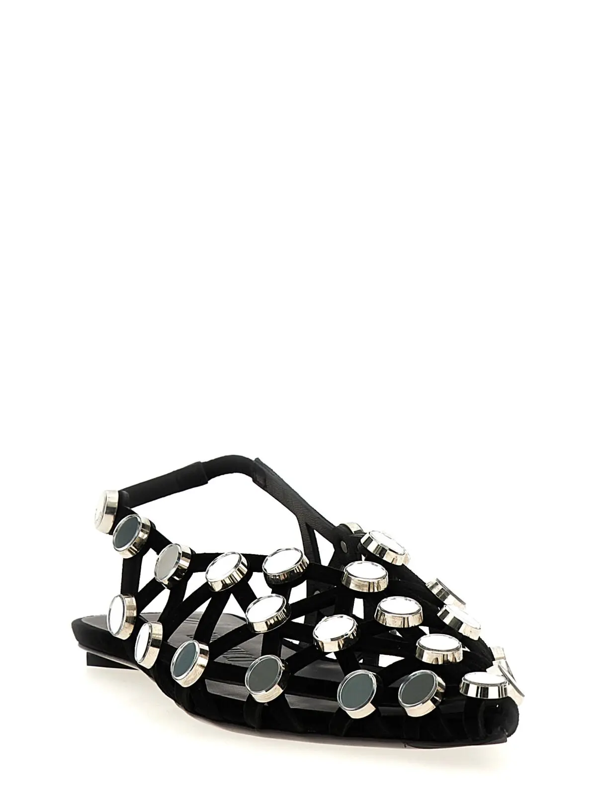 Чорні жіночі туфлі The Attico Grid виготовлені з високоякісного замшевого матеріалу з 100% козячої шкіри, що забезпечує неперевершену м’якість і комфорт. Інноваційний дизайн з дзеркальною аплікацією та еластичним ремінцем підкреслює елегантність та стиль. Ці туфлі ідеально доповнять будь-який образ, від вечірніх до повсякденних, надаючи вашому вигляду вишуканості та статусу. Висока якість матеріалів і виготовлення гарантує тривалу експлуатацію, а універсальність моделі робить їх незамінним елементом гардеробу.
