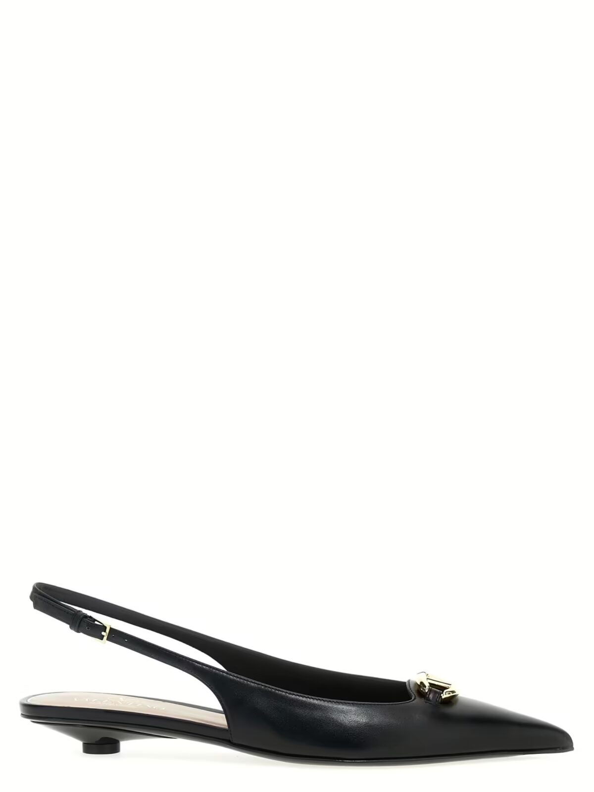 Туфлі Valentino Garavani VLogo слінгбек Чорні жіночі – це втілення елегантності та розкоші. Виготовлені з 100% шкіри теляти (Bos Taurus), вони пропонують неперевершену якість і довговічність. Вишуканий дизайн доповнюється золотистою металевою аплікацією ‘VLogo The Bold Edition’ на передній частині, що додає вишуканості та статусності. Регульований ремінець забезпечує комфортну ідеальну посадку, роблячи ці слінгбеки не лише стильними, але й практичними для щоденного носіння. Інноваційні матеріали гарантують максимальний комфорт та зносостійкість, а класичний чорний колір робить їх універсальними для будь-якого гардеробу. Туфлі Valentino Garavani VLogo підкреслюють бездоганний смак і високий статус своєї власниці, створюючи завершений образ справжньої леді. Ці слінгбеки стануть незамінним аксесуаром для тих, хто цінує розкіш, стиль та комфорт у кожній деталі.