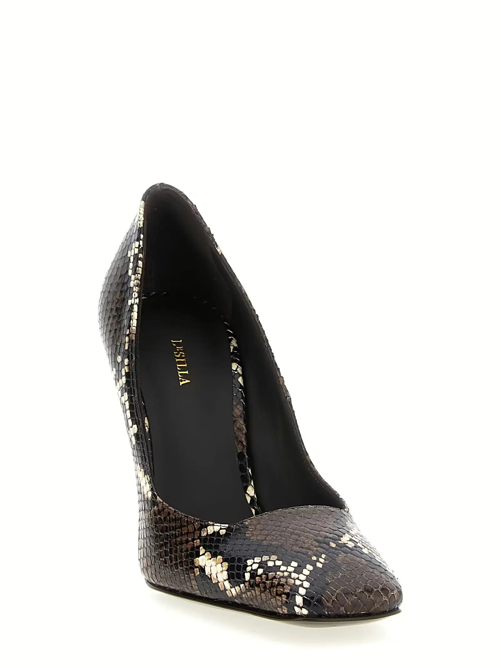 Витончені жіночі туфлі Vittoria виконані з натуральної шкіри теляти, оздоблені елегантним візерунком під пітона, що підкреслює індивідуальний стиль і статус власниці. Квадратний мисок та стійкий каблук з металевими деталями поєднують інноваційний дизайн з неперевершеною якістю, забезпечуючи комфорт і універсальність для будь-яких урочистих подій.