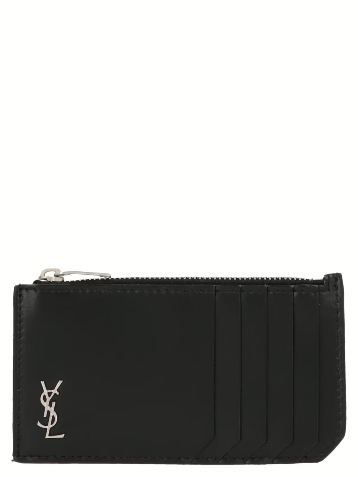 Візитниця з маленьким монограмом Saint Laurent створена з чорної шкіри телят Bos Taurus. Шкіра Cuir glacè має матовий завершальний ефект, додаючи вишуканості та стилю. Візитниця має блискавку в металевому відтінку та логотип Saint Laurent, виконаний у сріблястому металевому кольорі. Ця чоловіча візитниця від Saint Laurent поєднує в собі витонченість і практичність, що робить її ідеальним аксесуаром для будь-якого ділового чоловіка.