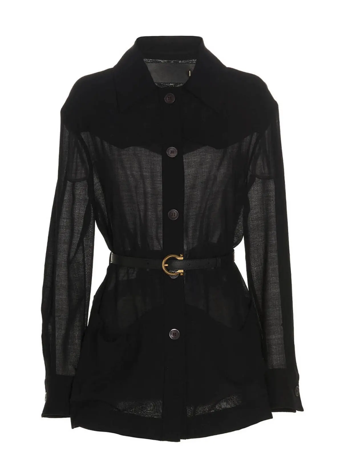 Вовняна куртка Wool blend Ferragamo – стильна чорна жіноча куртка з кнопковим застібкою, кишенями, довгими манжетами на рукавах і комірцем.