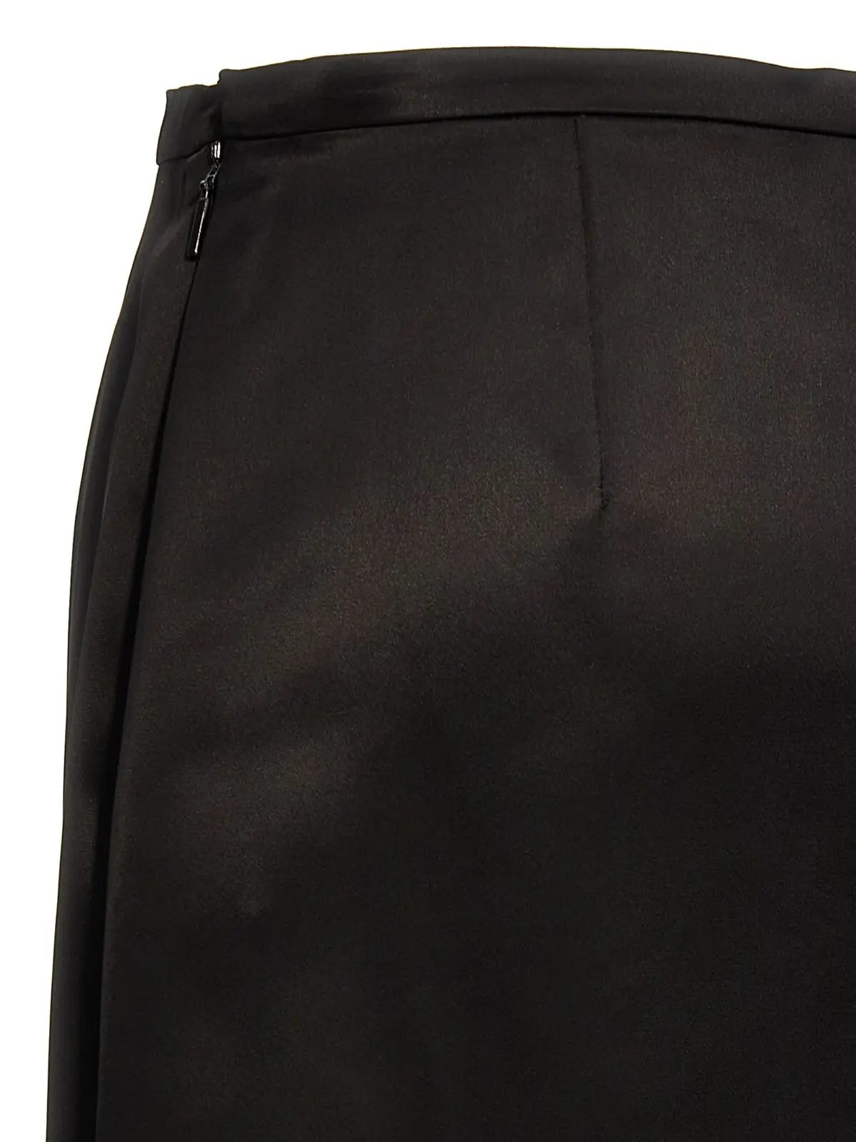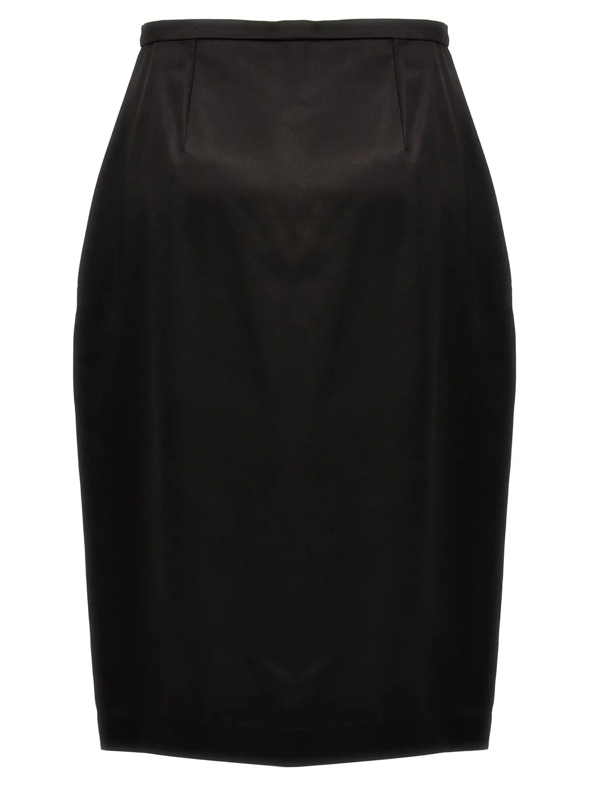 Елегантна жіноча спідниця-олівець від Saint Laurent виконана з атласної віскози чорного кольору. Модель має середню посадку та бічну застібку на блискавку. Склад: 100% віскоза.