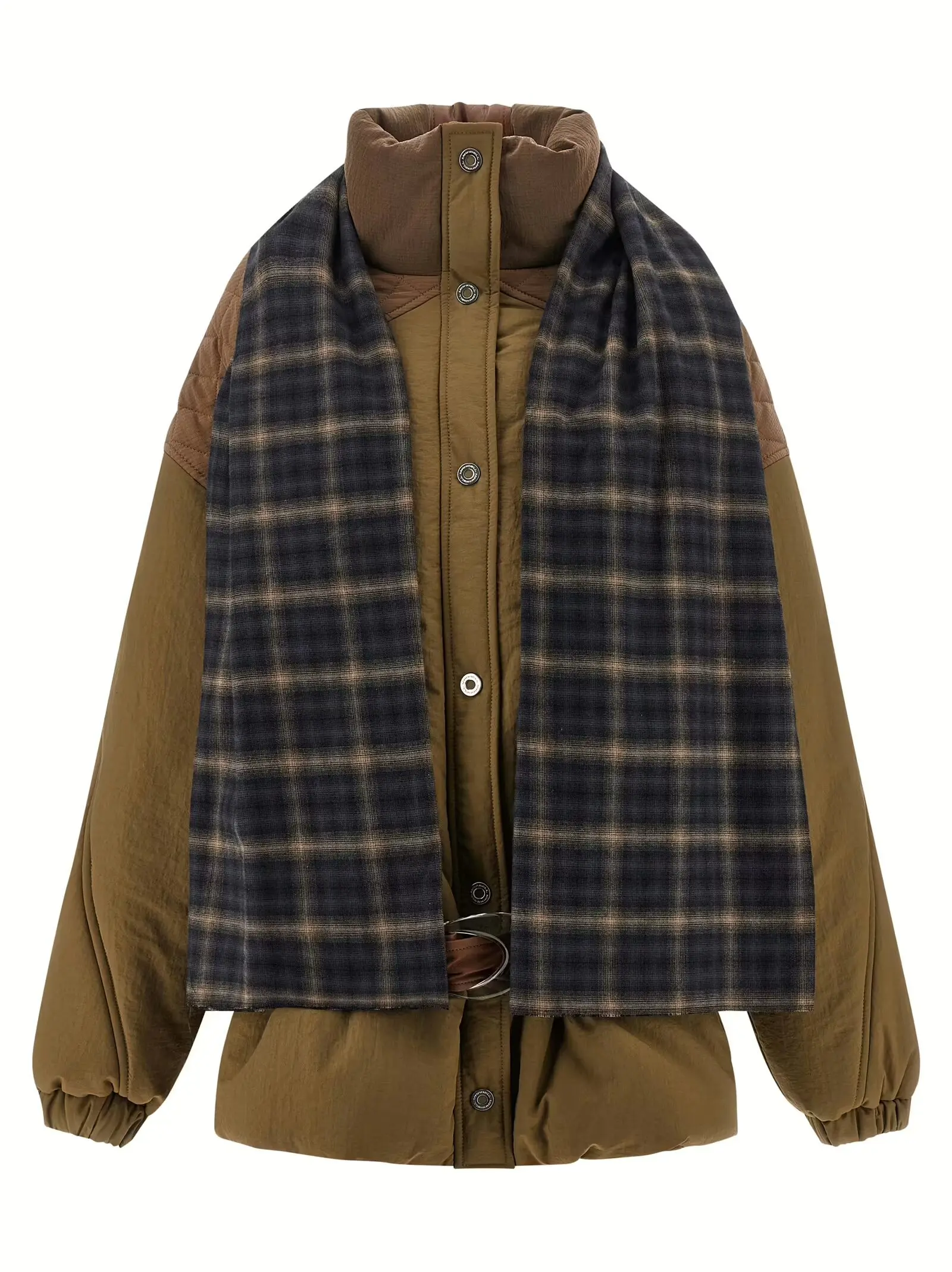 Жакет Amy виконаний із високоякісної технічної тканини з стьобаними деталями, що поєднує інноваційність і комфорт. Елегантний стоячий комір, знімний шарф і ремінь із матеріалу під шкіру підкреслюють універсальність і статус, створюючи неперевершений образ для сучасної жінки.