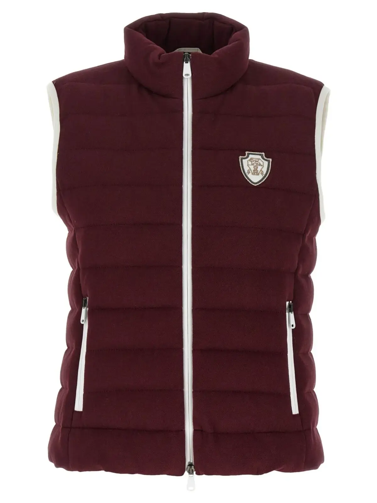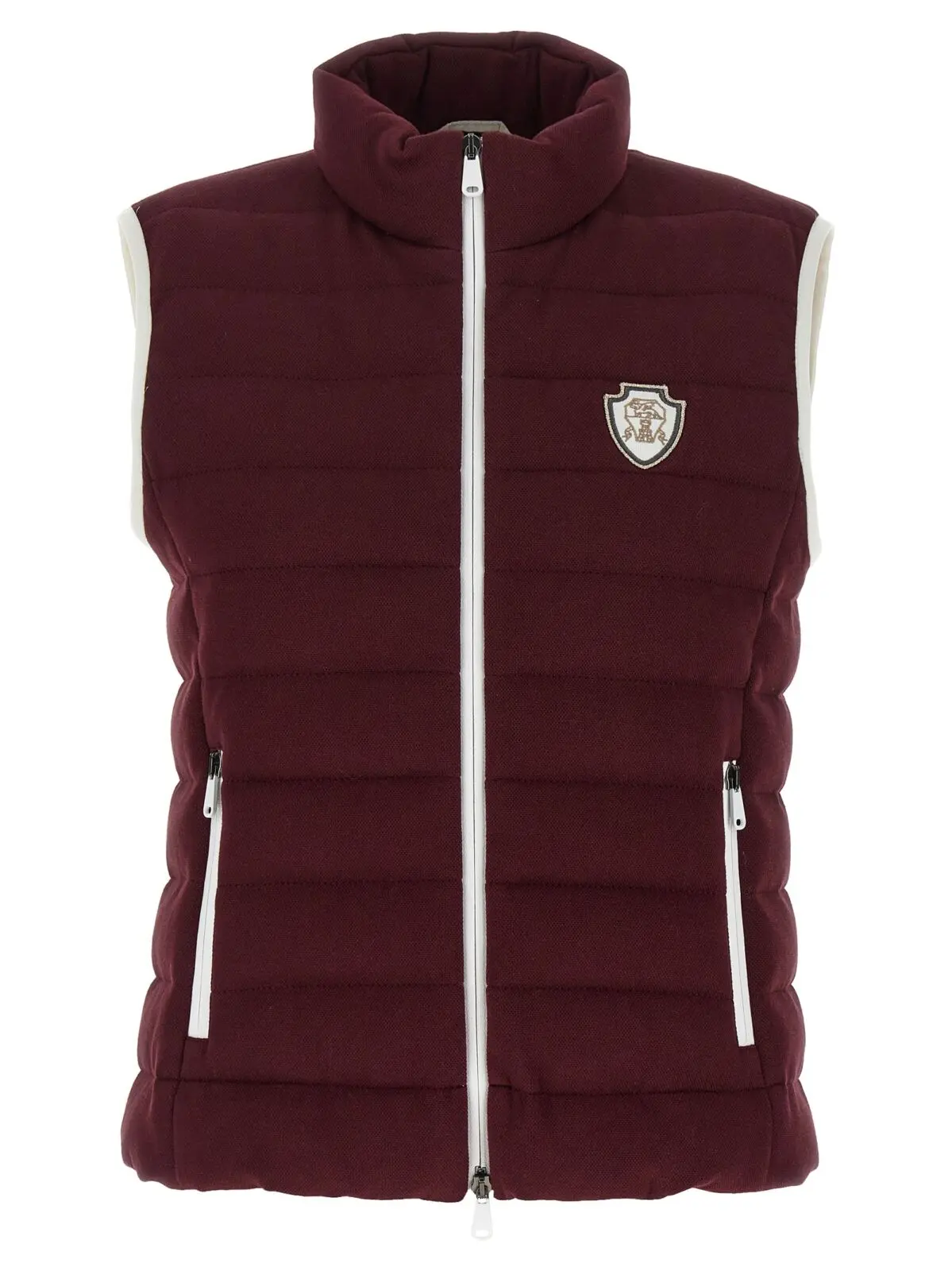 Елегантний жіночий жилет бордового кольору з високоякісного піке-бавовни з легким утепленням натуральним гусиним пухом, що поєднує комфорт і стиль. Вишуканий дизайн з контрастними деталями, передньою застібкою на блискавку, накладними кишенями та логотипом підкреслює престиж і універсальність для впевненого образу в будь-яких умовах.