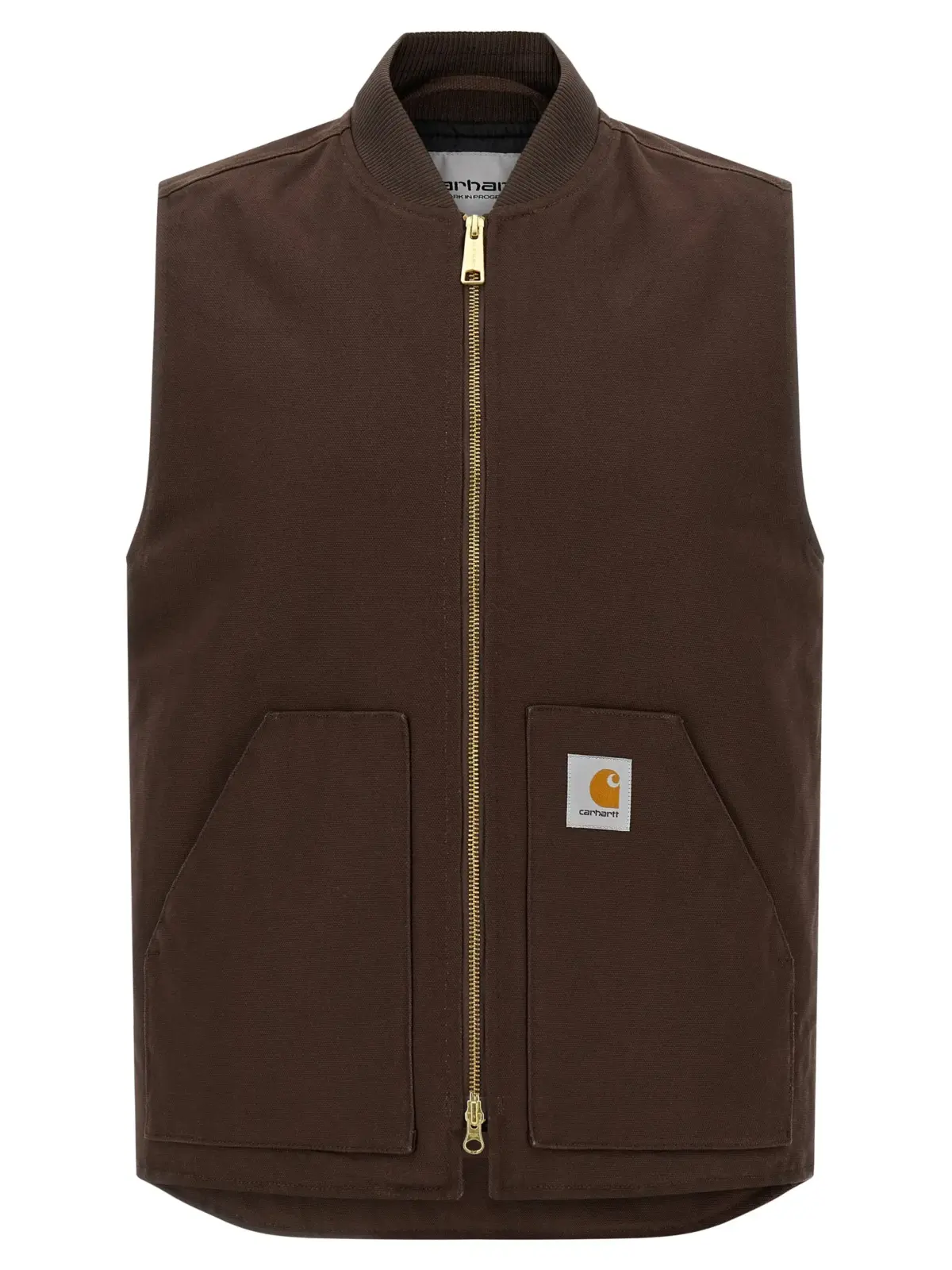 Чоловічий жилет класичного крою з коричневого щільного котону Dearborn з термоізоляцією Thinsulate®, підкладкою з нейлонового тафту та еластичним трикотажним коміром, що поєднує комфорт, стиль і функціональність, підкреслюючи статус та неперевершену якість.