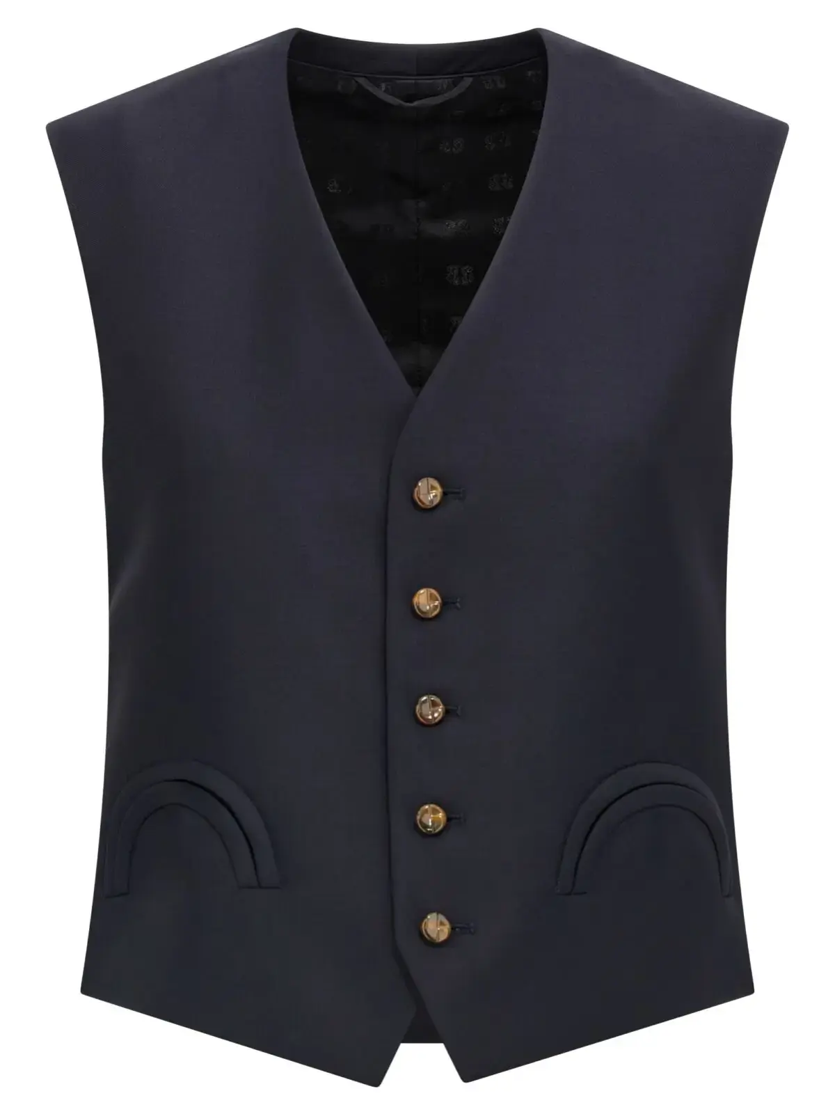 Елегантний жіночий жилет синього кольору виготовлений з високоякісної суміші 71% нової вовни та 29% мохеру, що забезпечує неперевершений комфорт і тепло. Вишуканий дизайн з V-подібним вирізом, застібкою на ґудзики спереду, функціональними кишенями та регульованим ремінцем на спині підкреслює статус і стиль, поєднуючи інноваційність із універсальністю для сучасної модниці.