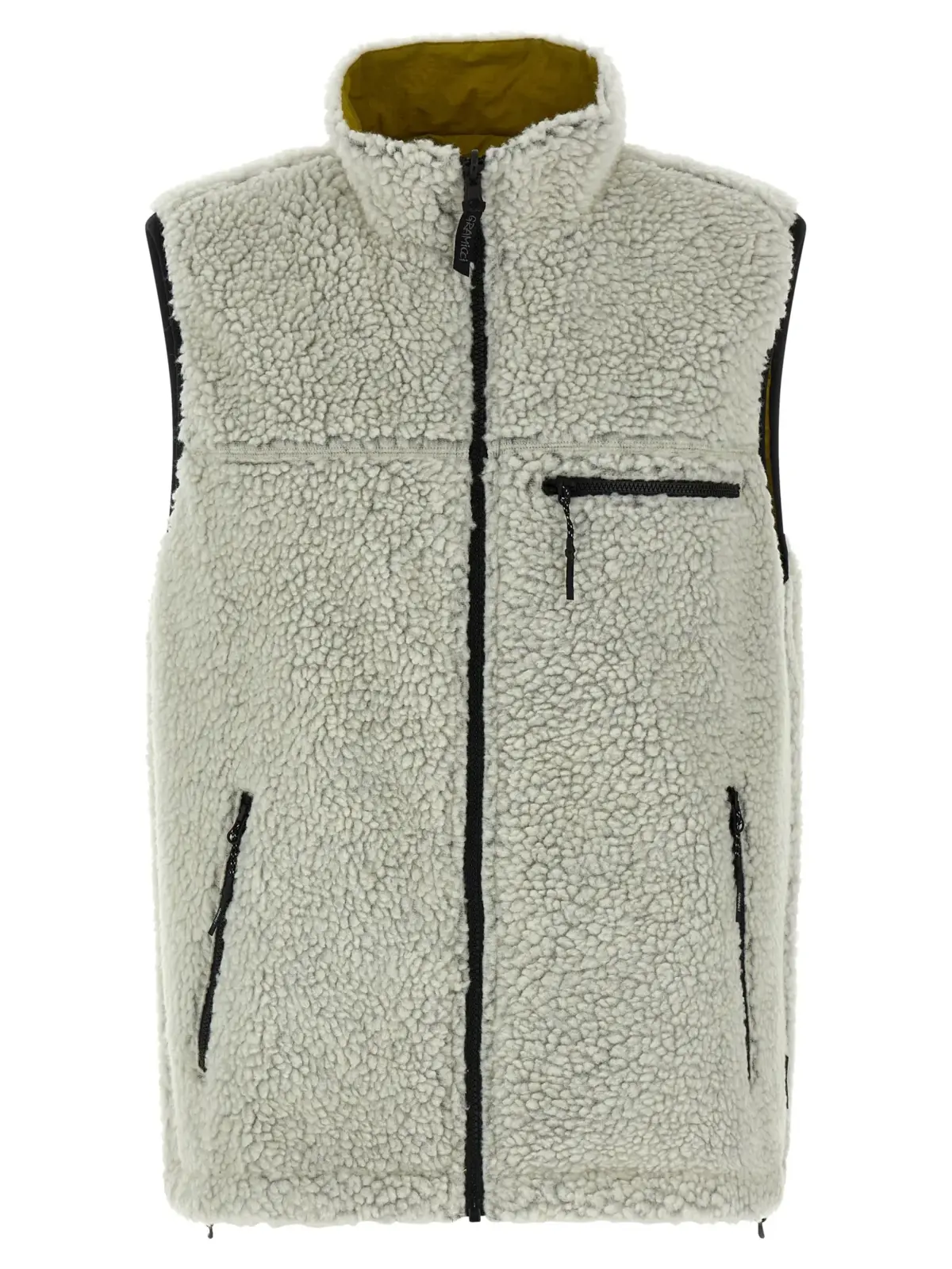 Елегантний двосторонній жилет із високоякісного шерстистого флісу та міцного нейлону, що поєднує інноваційний дизайн із функціональністю. Високий комір, вишукана вишивка логотипу та практичні кишені підкреслюють статус і універсальний стиль для сучасного чоловіка.