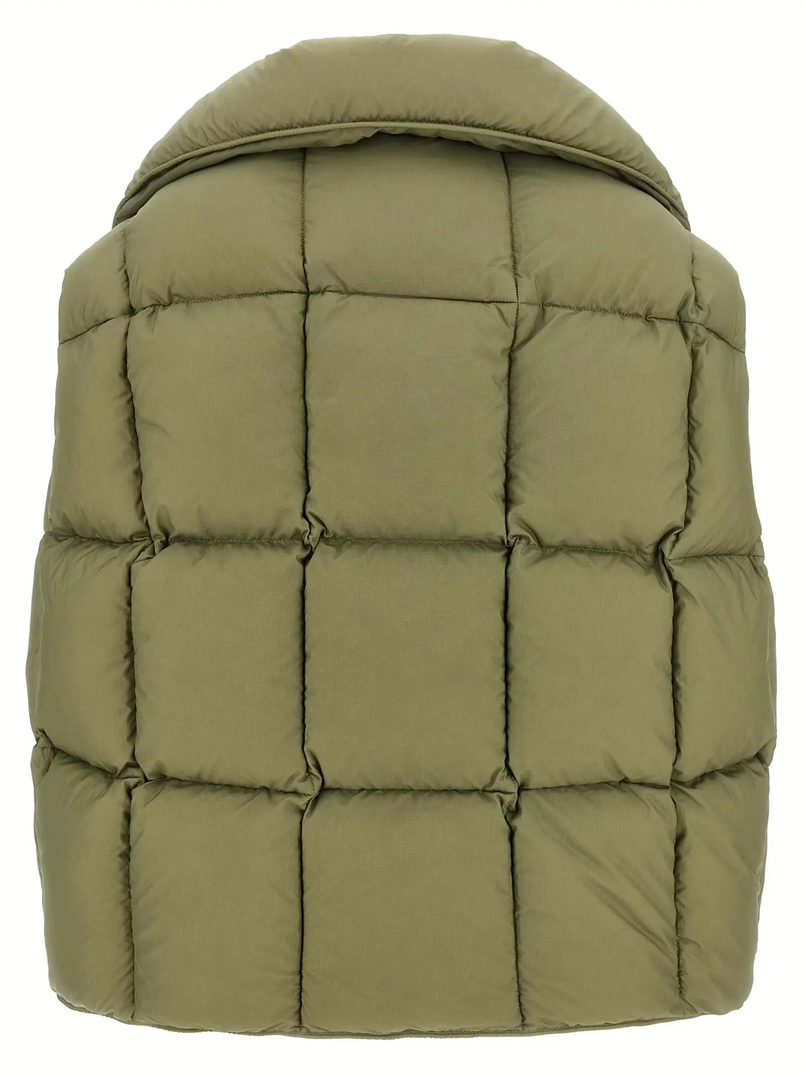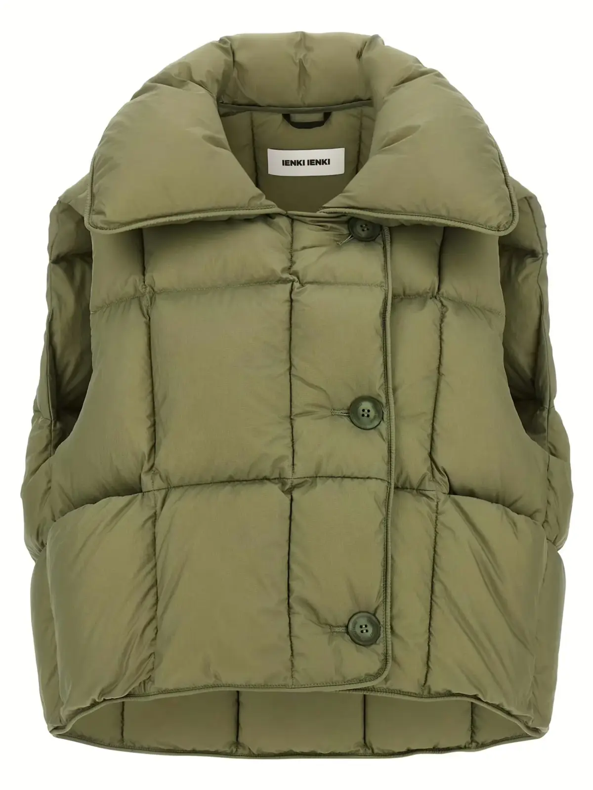 Жилет виконаний з водовідштовхувального нейлону високої якості з наповнювачем із гусиного пуху, поєднує інноваційний дизайн із комфортом: асиметричний крій, м’який комір-подушку та функціональні кишені створюють універсальний образ, що підкреслює вишуканий стиль і статус власниці.