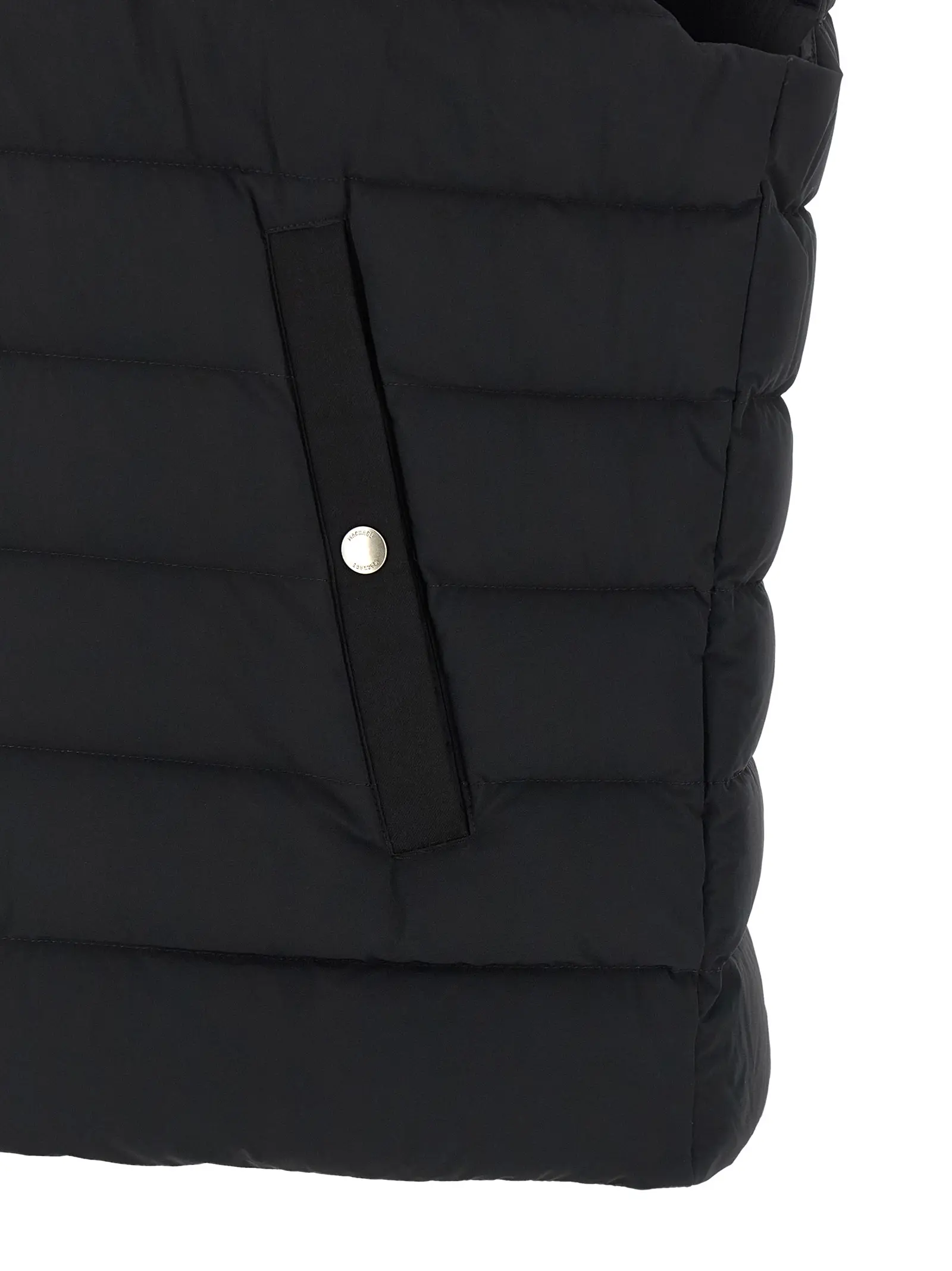 Центральна блискавка та бічні кишені на кнопках. Стьобана фактура з внутрішнім наповнювачем. Склад із 82% нейлону та 18% еластану.